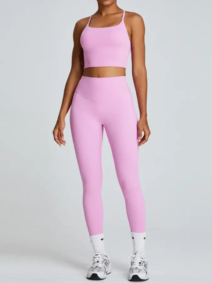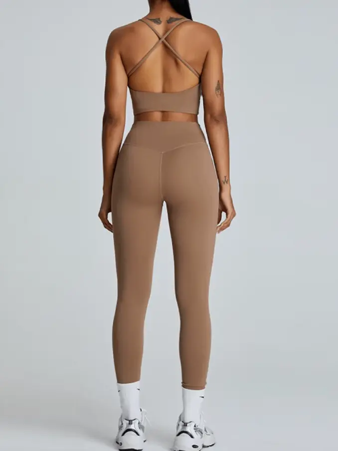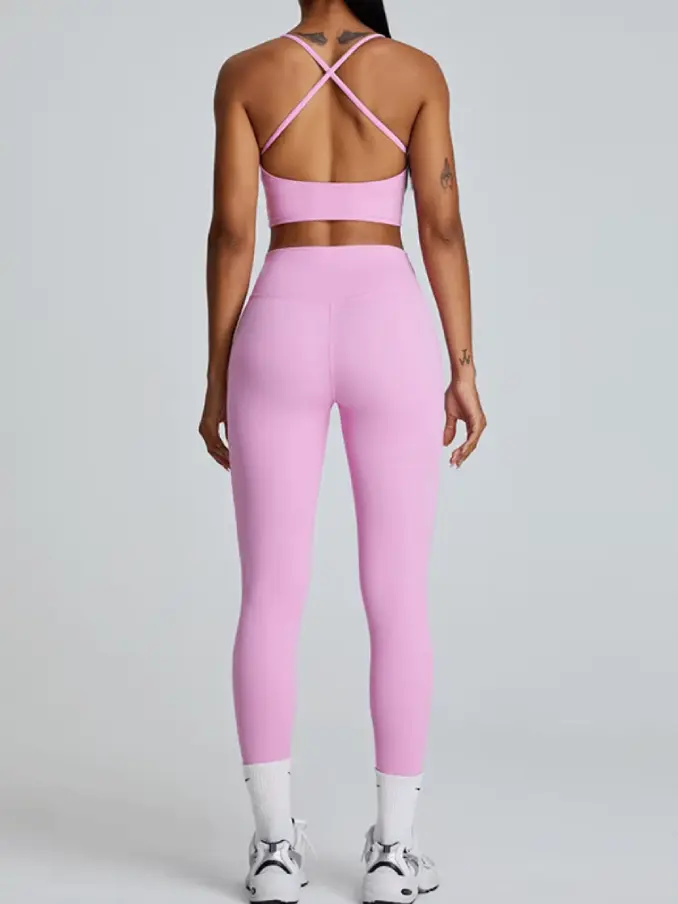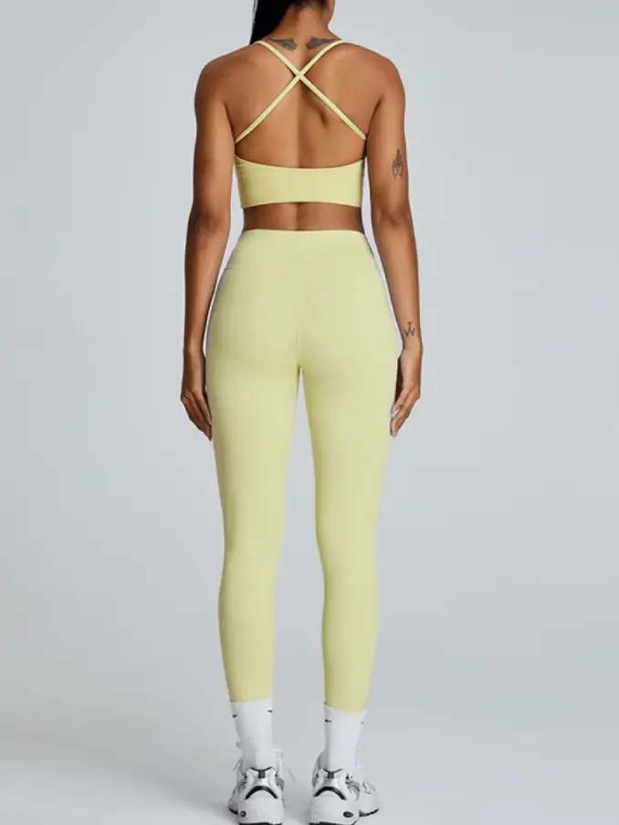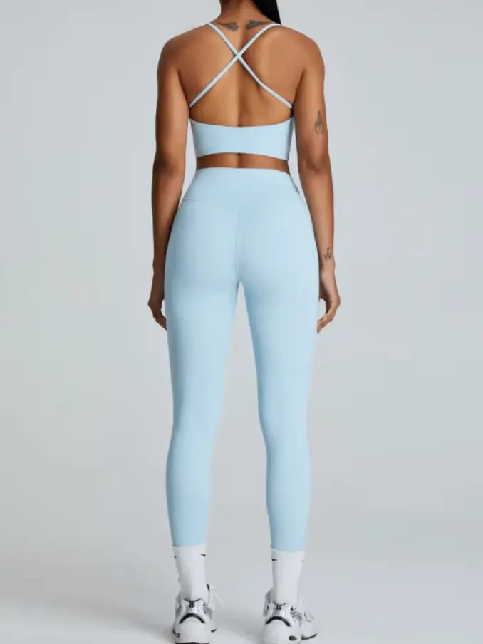 Women Yoga Cross Strap Back Bra Leggings Set 2 Piece Yoga Tights Sportswear Athleisure Workout Yoga Gym Fitness Sets