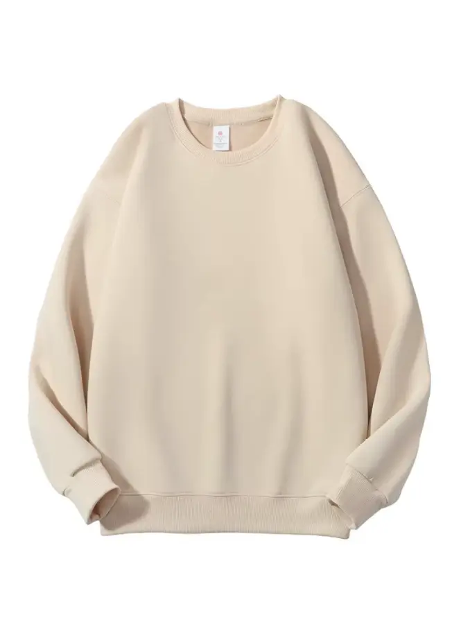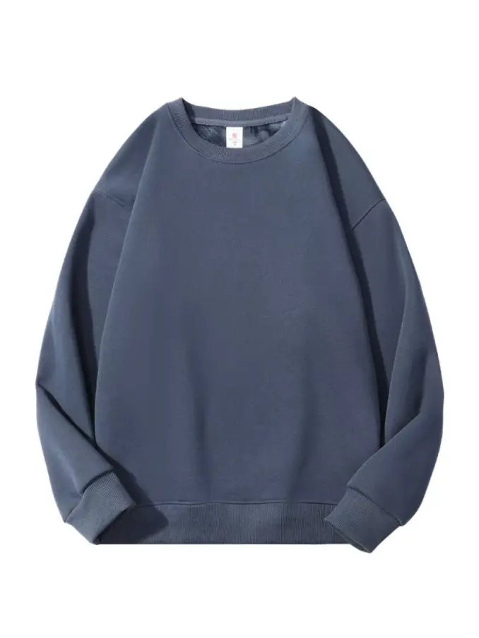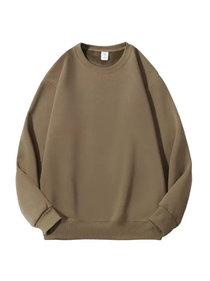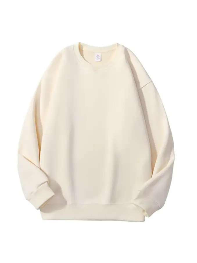 Men's Pullover Fleece Thickened Solid Color Men Oversize Crew Neck Sweatshirt