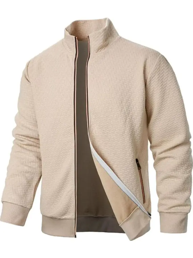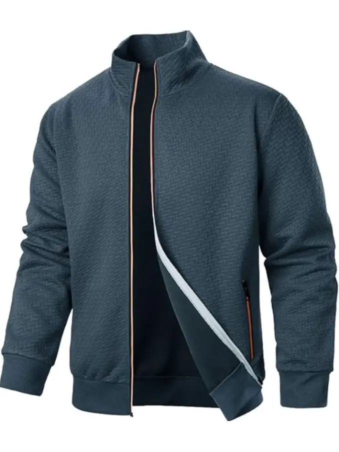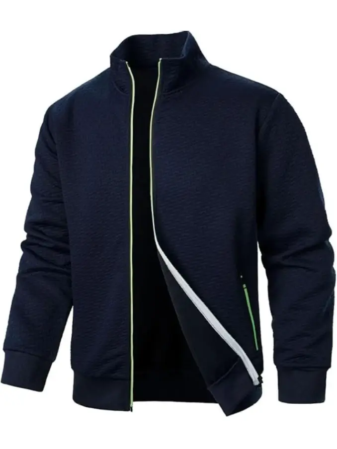 Men's New Color Zipper Stand up Collar Sweatshirt Jacket Men's Casual Jacquard Cardigan Sweatshirt