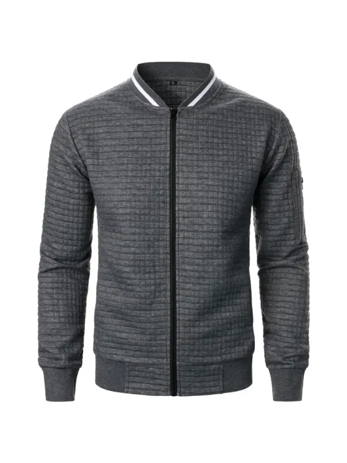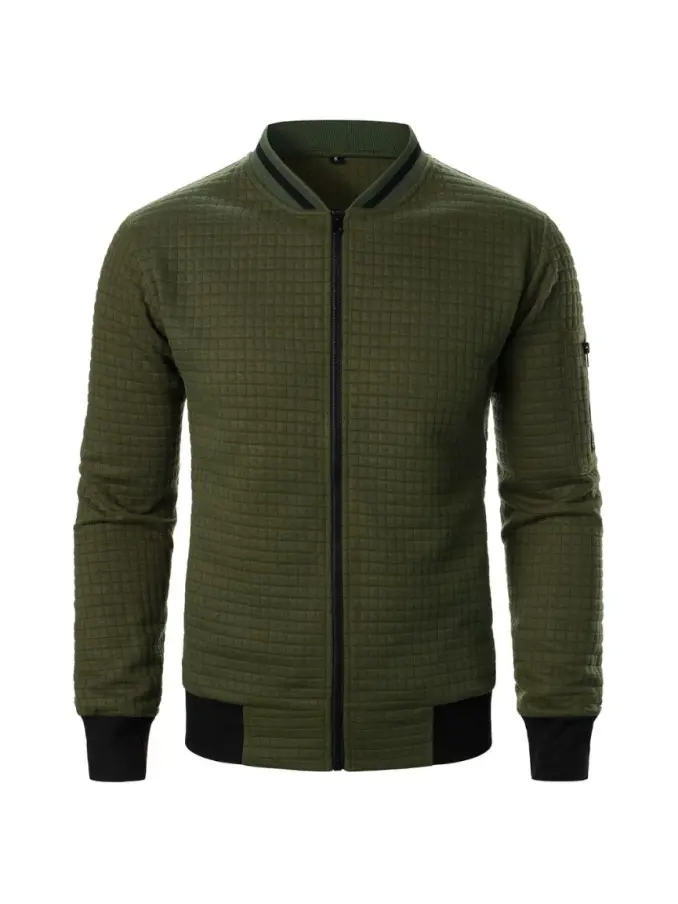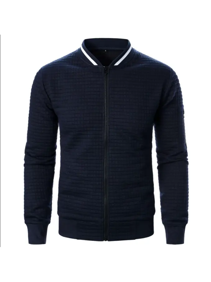 Men's Zipper Stand Collar Sweatshirt Jacket Men's Casual Plaid Cardigan Sweatshirt