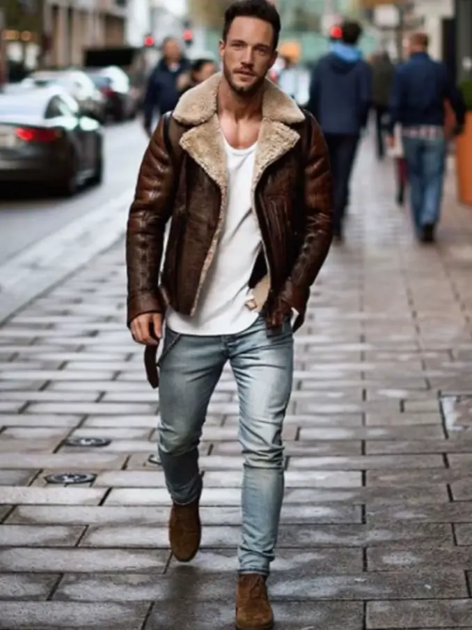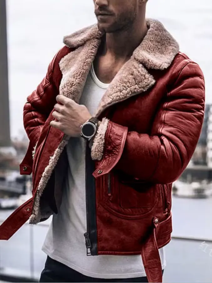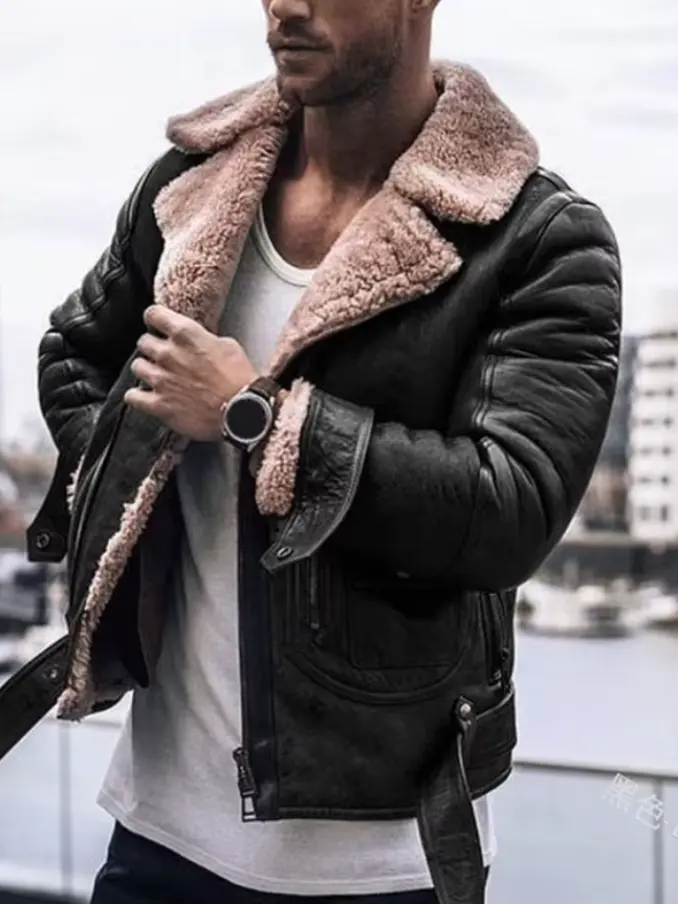 Burst Leather Fleece Men's European Thick Zipper Coat Fur - Body Color Contras