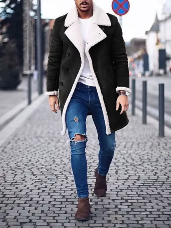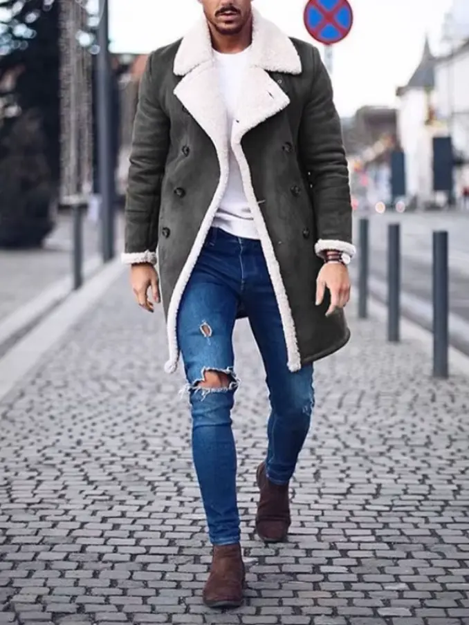 Sleeved Fabric Printed Coat Cotton Jacket Thickened New Men's Checkered Jacket