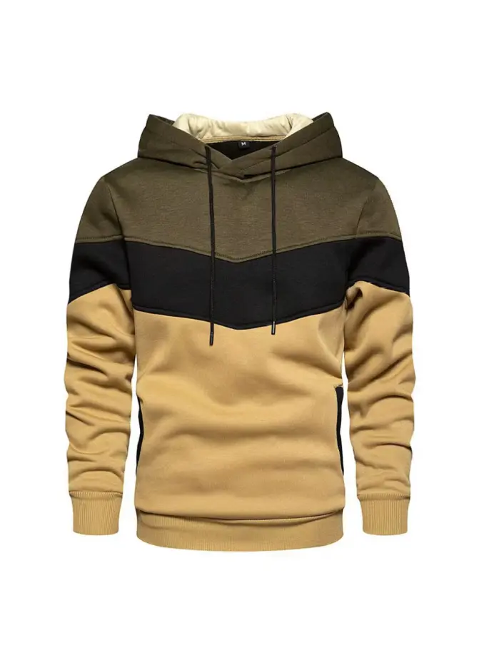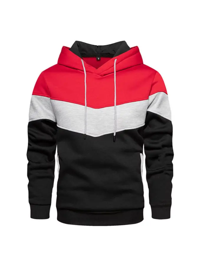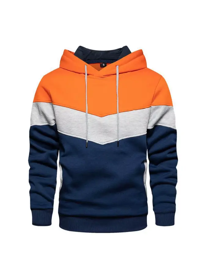 Fall Winter Hoodie Casual Patchwork Hood Pullover Custom New Style Color Block Letter Print Long Sleeve Men's Hoodies