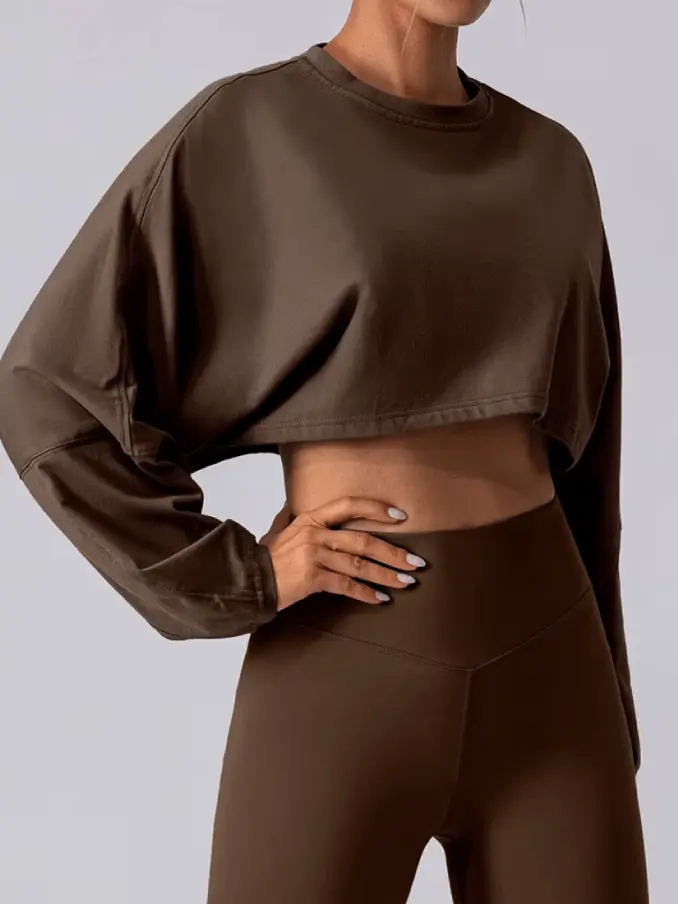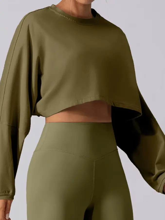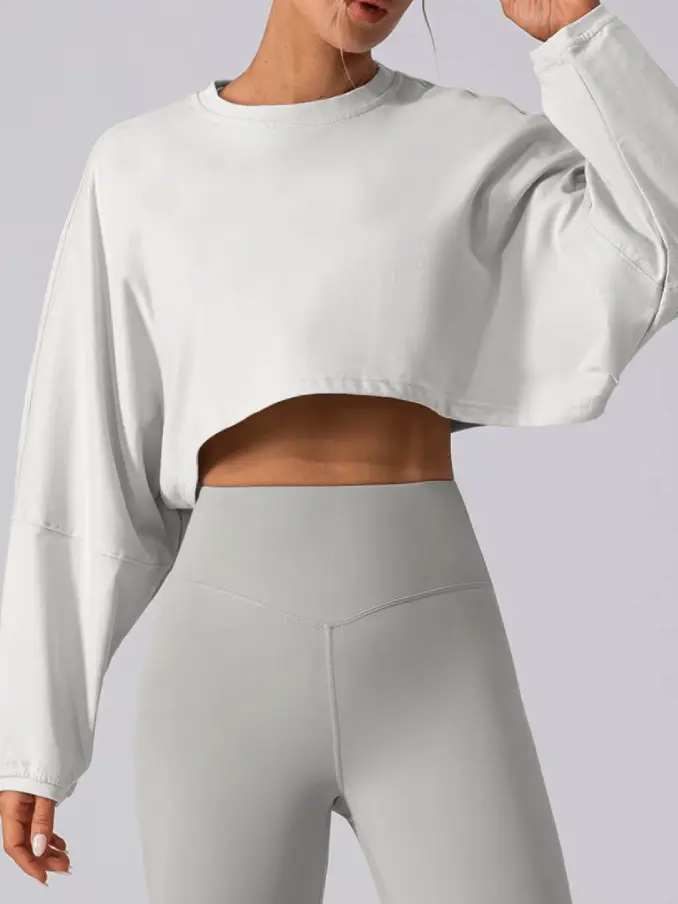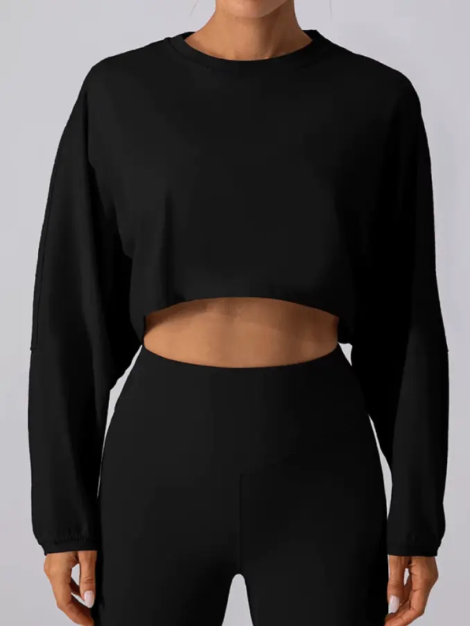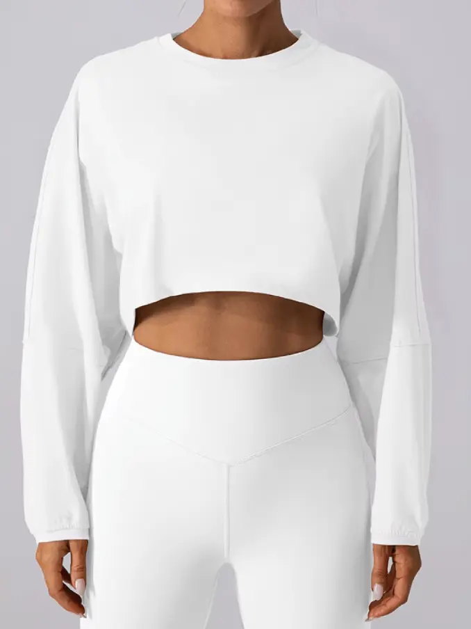 Women's Round-Neck Long-Sleeved Sweatshirt Loose Top for Yoga Running Winter Sports Short Base Layer Front Printed
