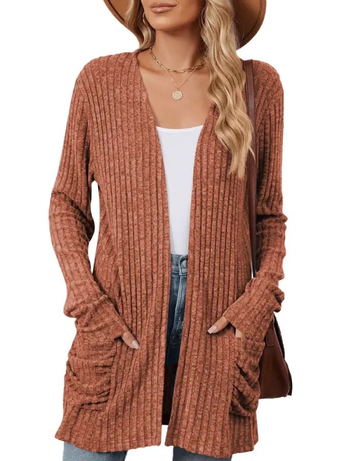 Women's Long Style Cardigan Coat Plus Size Woven Polyester Knit Button Sweaters Designer Style