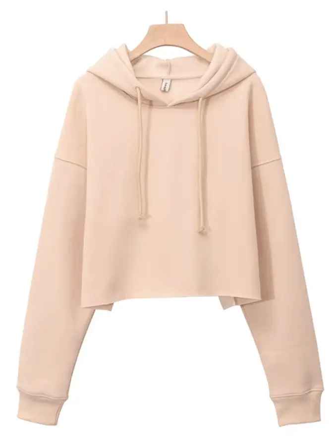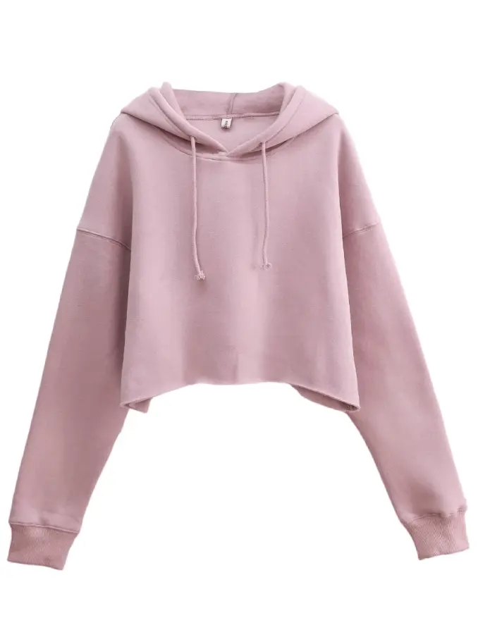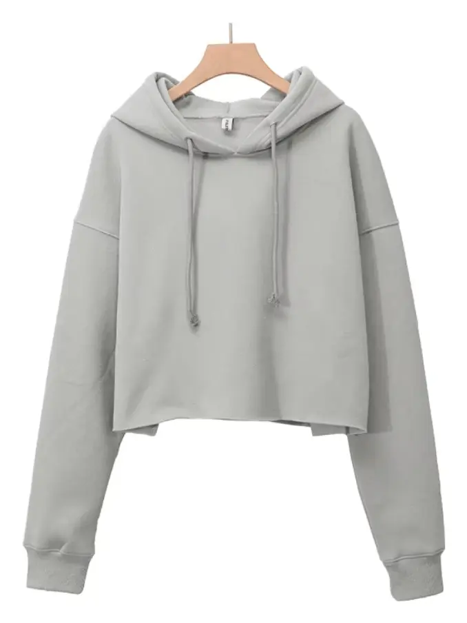 European and American Style Sportswear Sweatshirt Long-Sleeved Hooded Pull-Over Crop Top with Fleece for Spring Autumn Winter