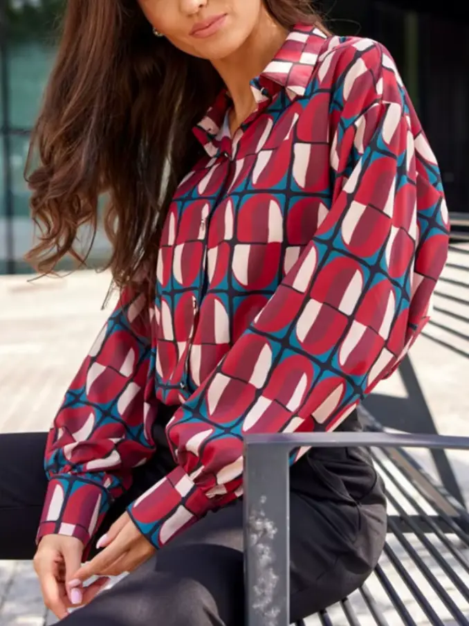 Spring And Autumn Digital Print Blouse Casual Loose Cardigan Long Sleeve Shirt Vintage Fashion Shirt Women Tops Clothes