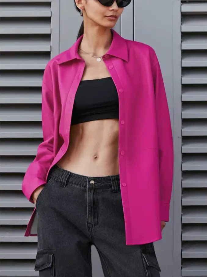 Womens Custom Loose Blue Pu Coat Long Coat for Women Leather Jackets for Women
