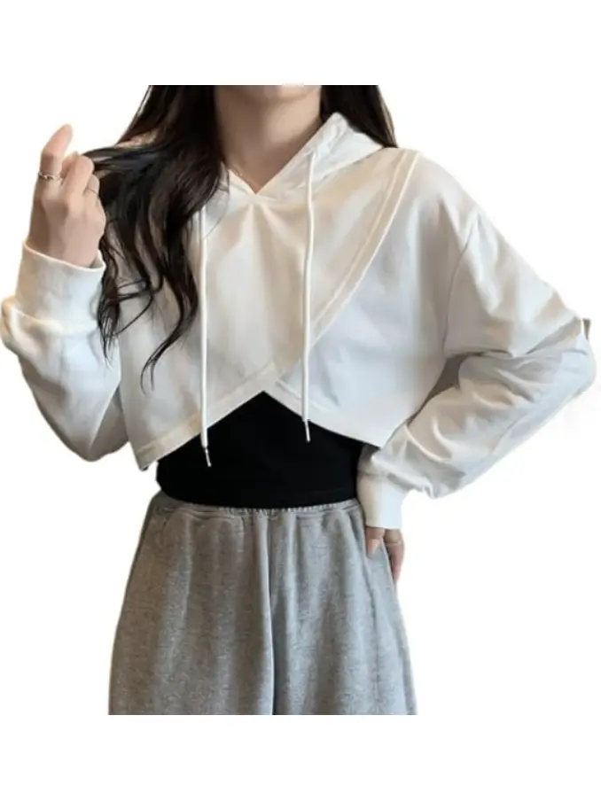 Women Coquette Crop Pullover Y2K Aesthetics Hoodies Drawstring Long Sleeve Sweatshirts Cottagecore Casual Outfits