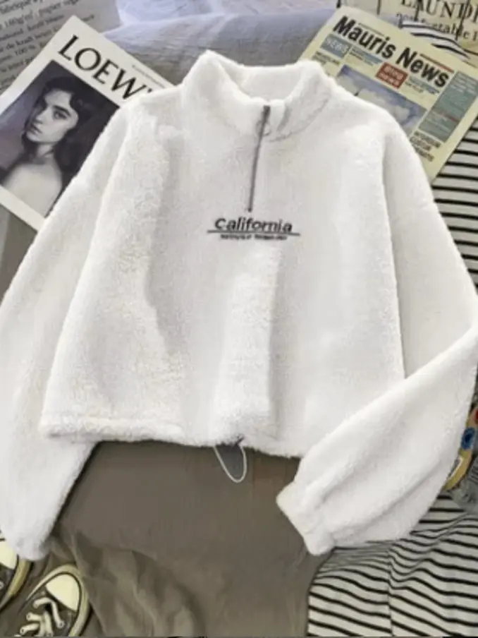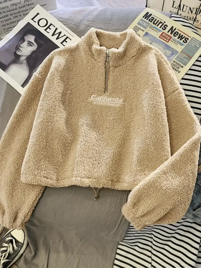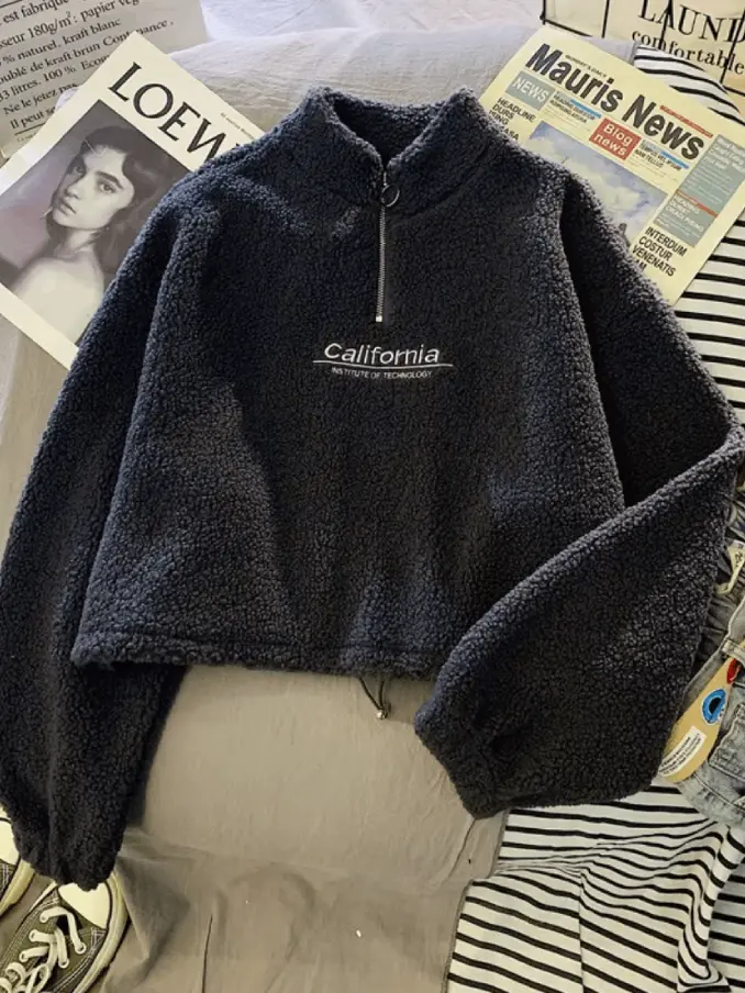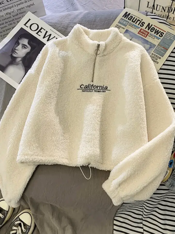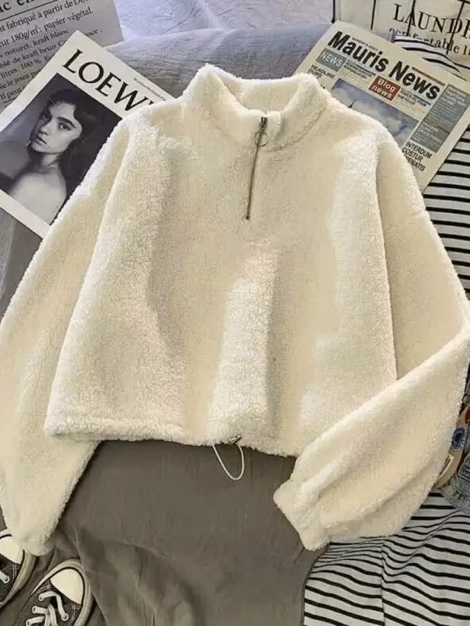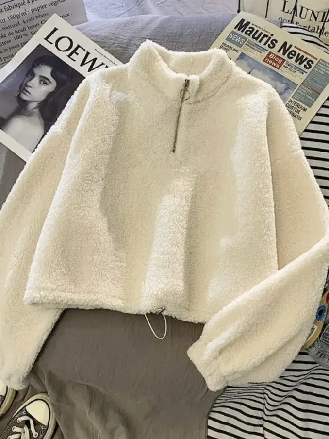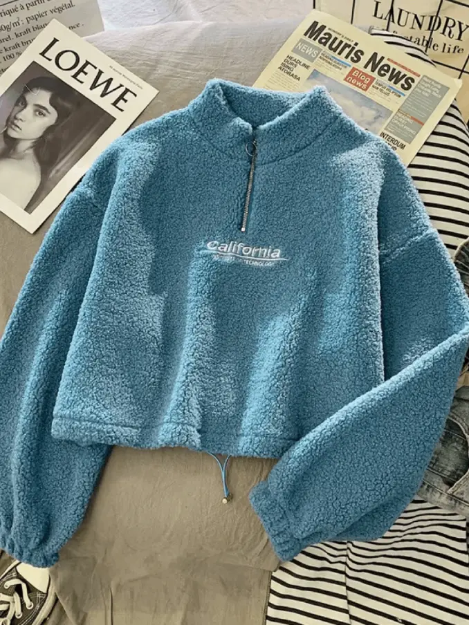 Thick Crop Top Hoodie for Women Korean Style Casual Short Length Autumn Winter Half Zipper Warm Sweatshirts