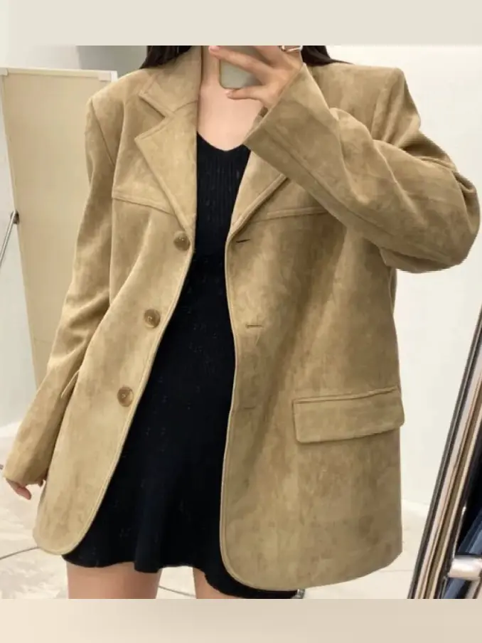 Autumn Women Blazer Coat - Korean Retro High Street Chic, Long Sleeve Loose Jacket, Elegant Office Lady Outerwear