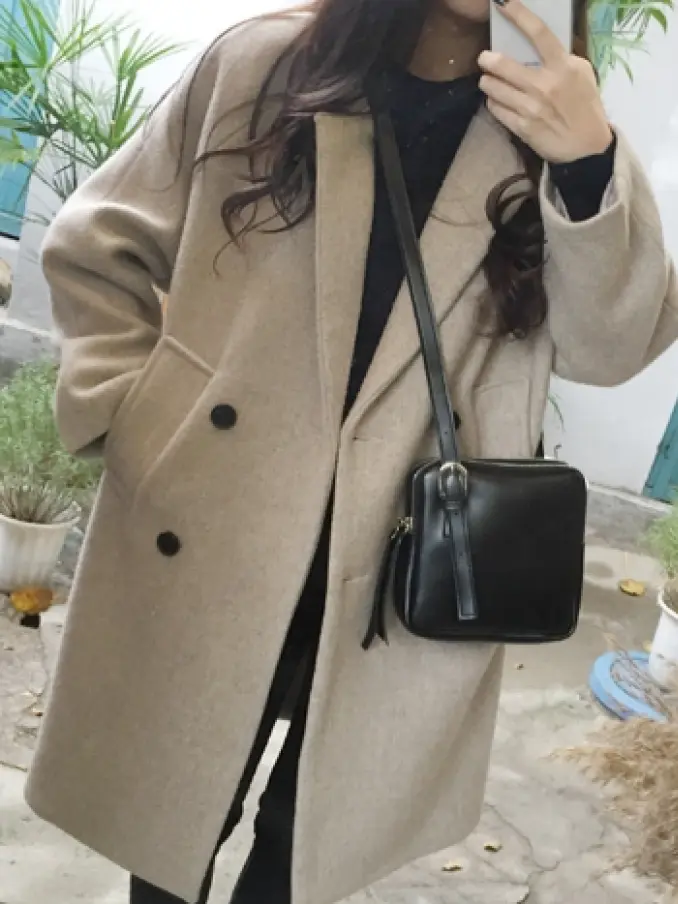 Women's Winter Coat - Korean Style Loose Fit Long Wool Blend Double Breasted Jacket, Warm Thick Oversized Outerwear