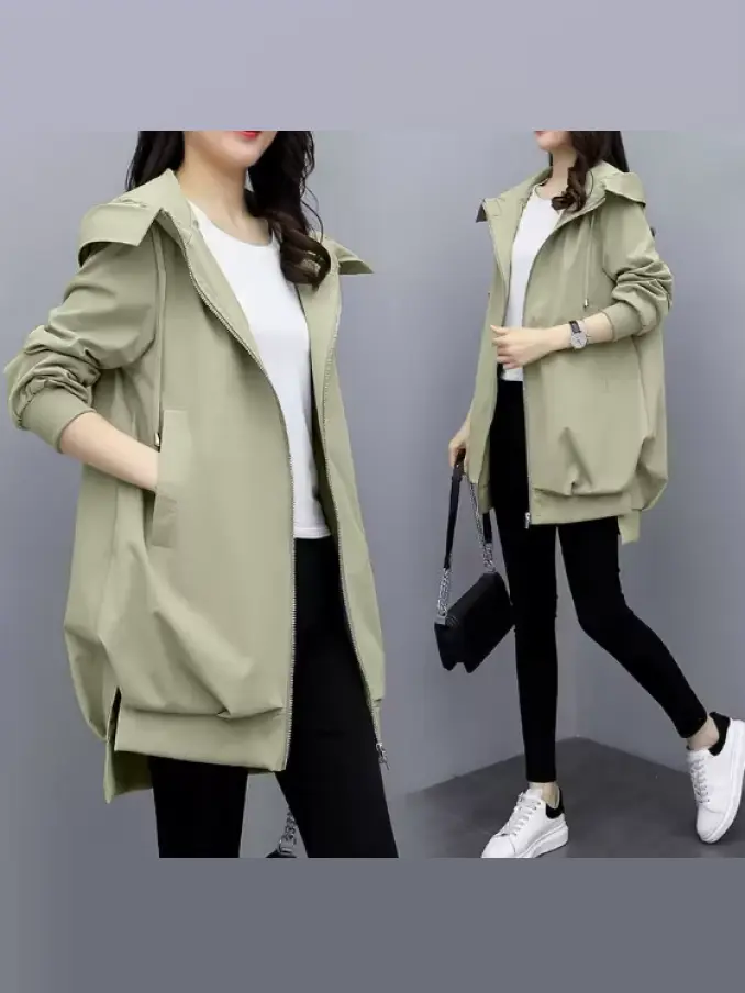 Women Casual Windbreaker Long Sleeve Hooded Overcoat Loose Basic Jacket Coats