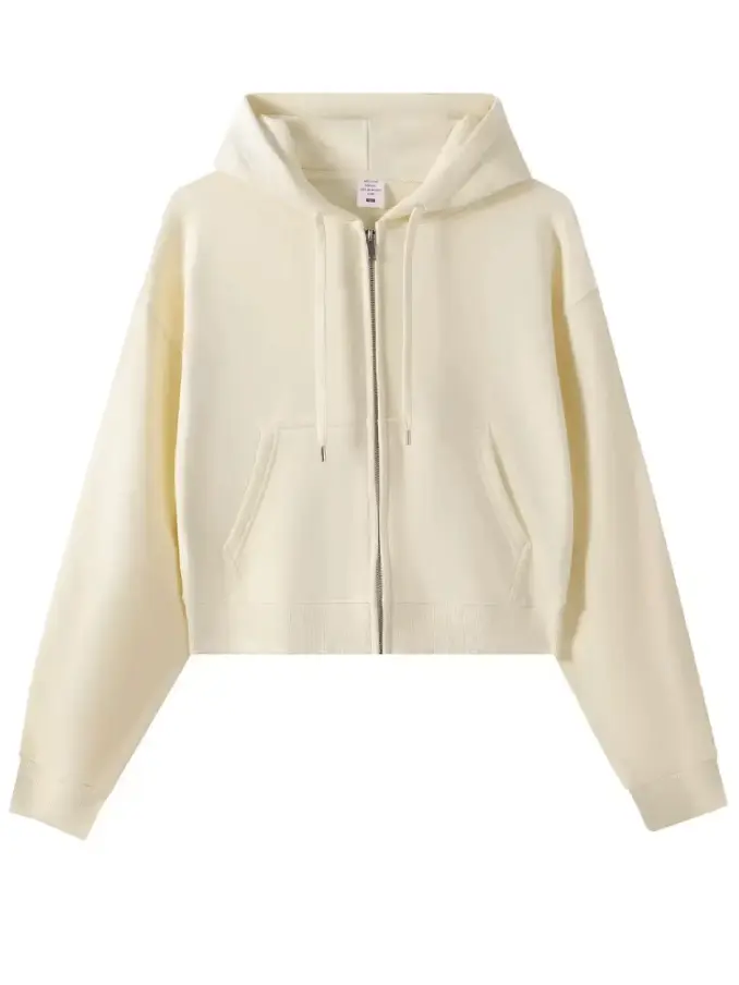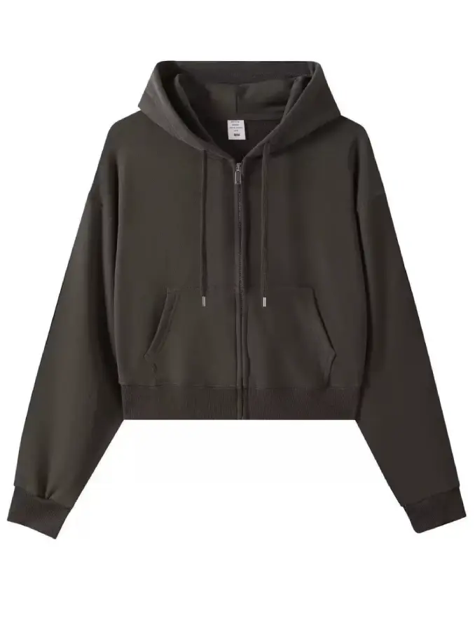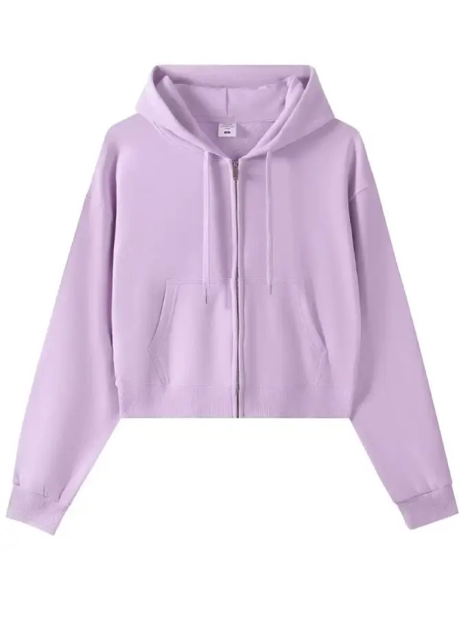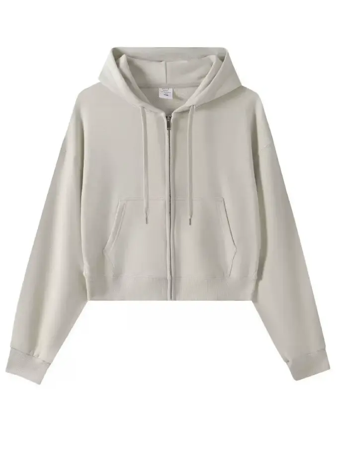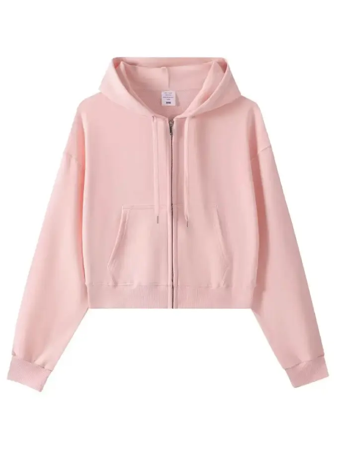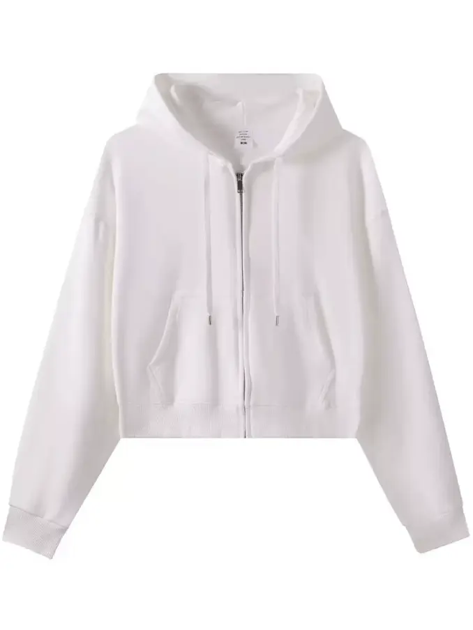 Crop Top Hoodie for Women US Style Casual Short Length Autumn Full Zipper Hoodie