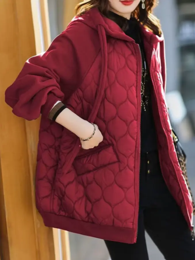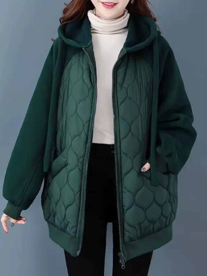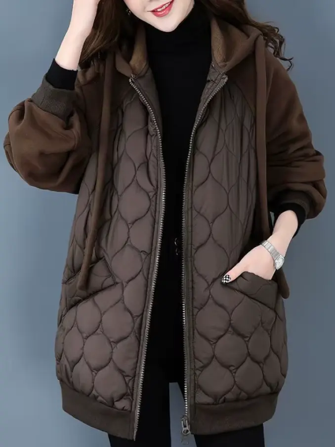 Women's Casual Outerwear Loose Warm Hooded Parkas Coat Polyester Lining Patchwork