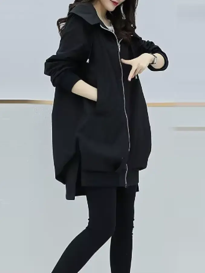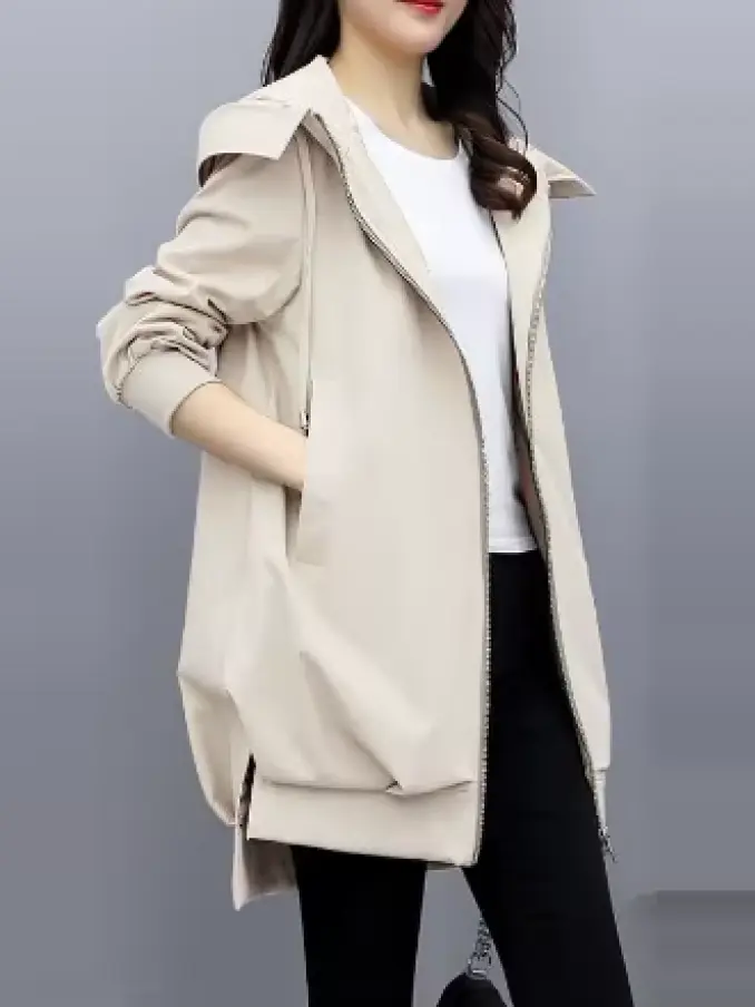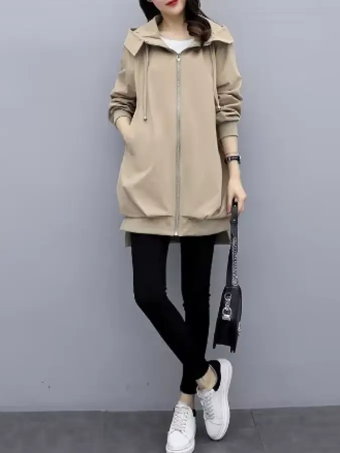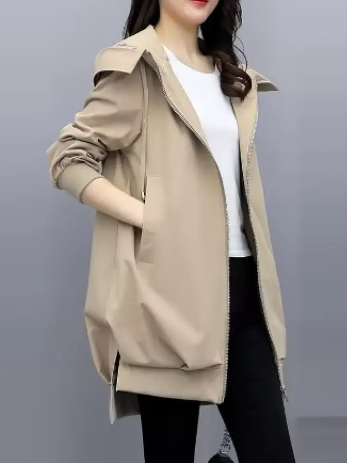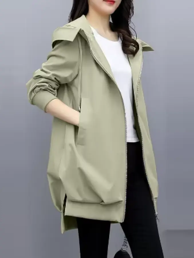 Women's Windbreaker Overcoat Casual Long Sleeve Mid-Length Jackets Coat