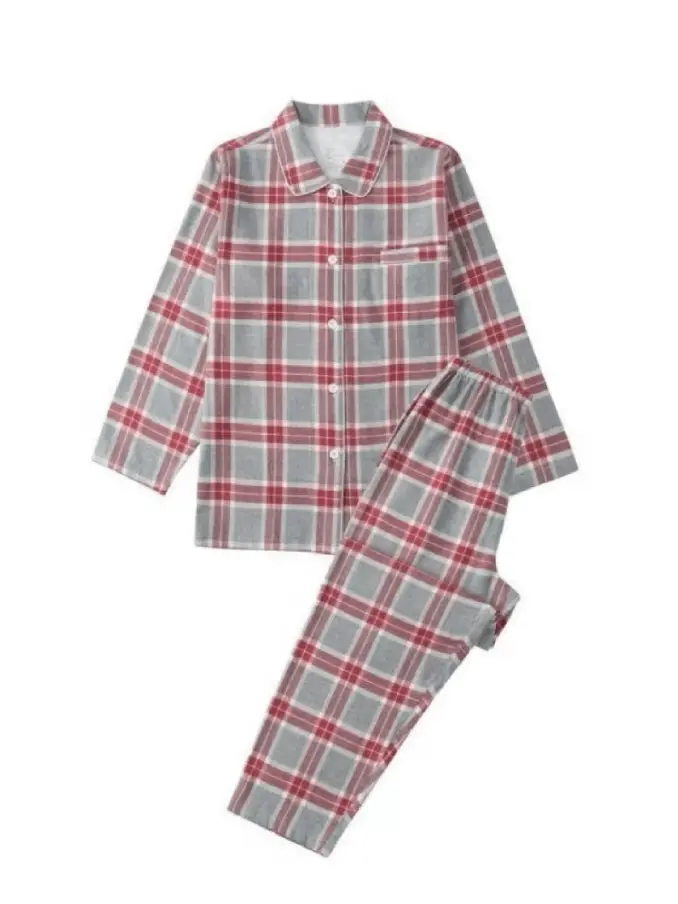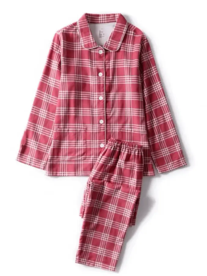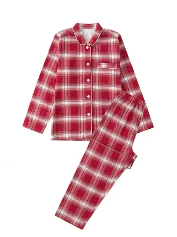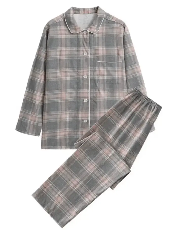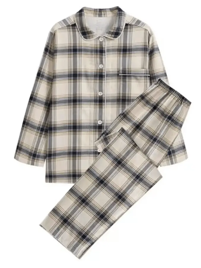 Plaid Women's Leisure Pajamas Set Turn-Down Collar Long Sleeve Trousers Comfortable Night Pijamas for Home Wear