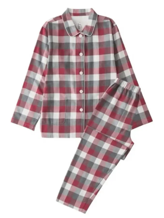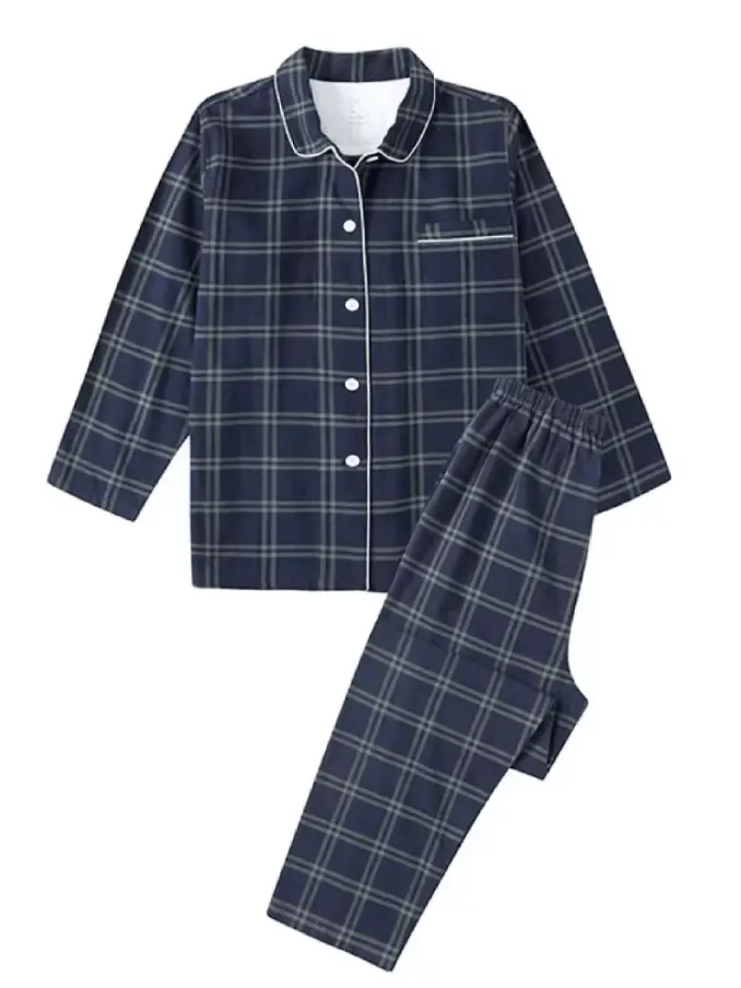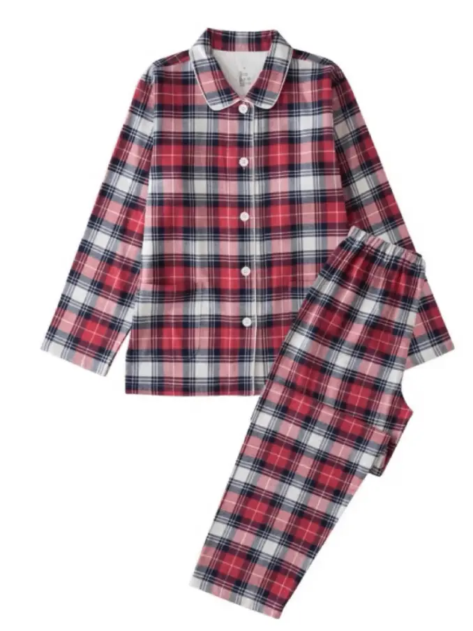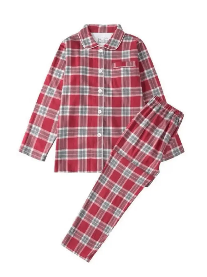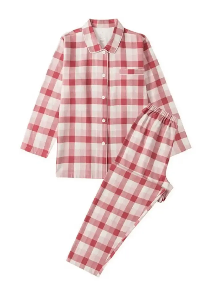 Plaid Women's Leisure Pajamas Set Turn-Down Collar Long Sleeve Trousers Comfortable Night Pijamas for Home Wear
