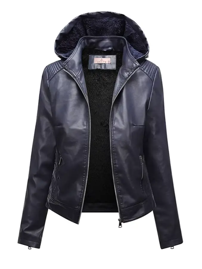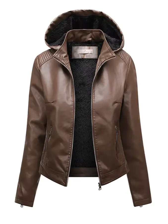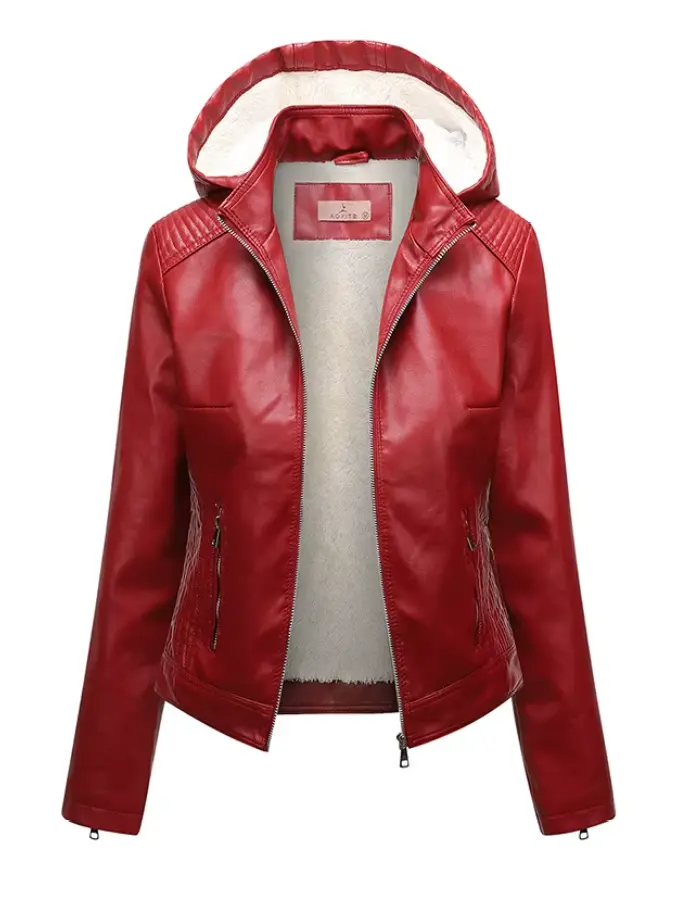 Women's Clothing Outerwear Zipper Coats Slim Plus Size Hooded Faux Pu Leather Jackets