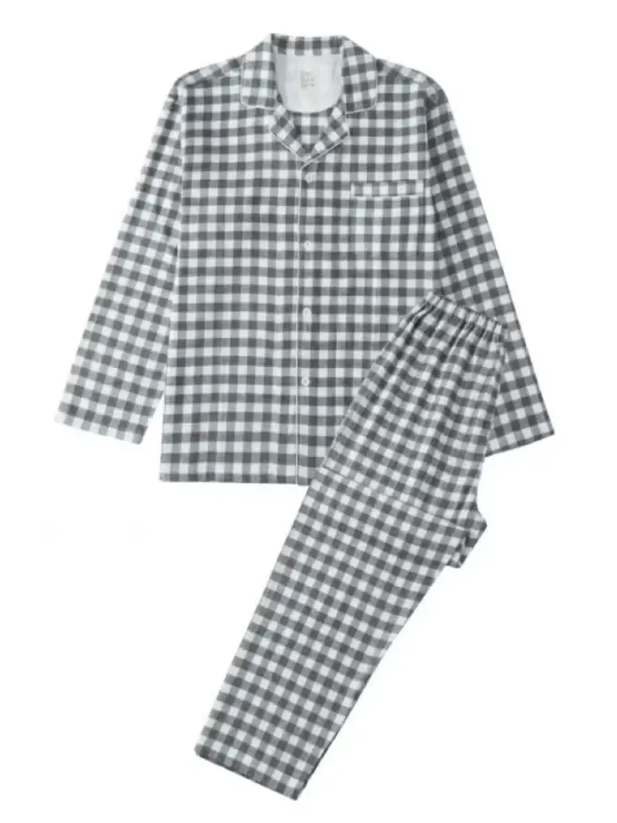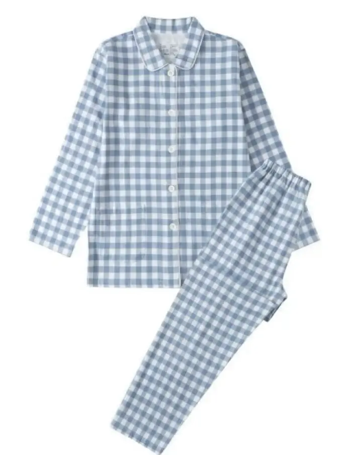 Women's Plaid Leisure Pajamas Set Turn-Down Collar Long Sleeve Trousers Autumn Sleepwear for Home Wear for Summer and Spring
