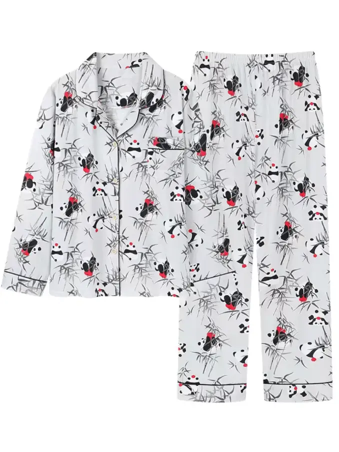 Autumn Plus Size Women's Leisure Pajamas Set Turn-Down Collar with Long Sleeves Jersey Fabric Night Pijamas Home Wear
