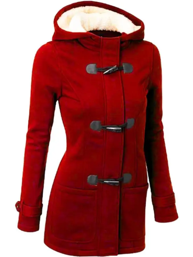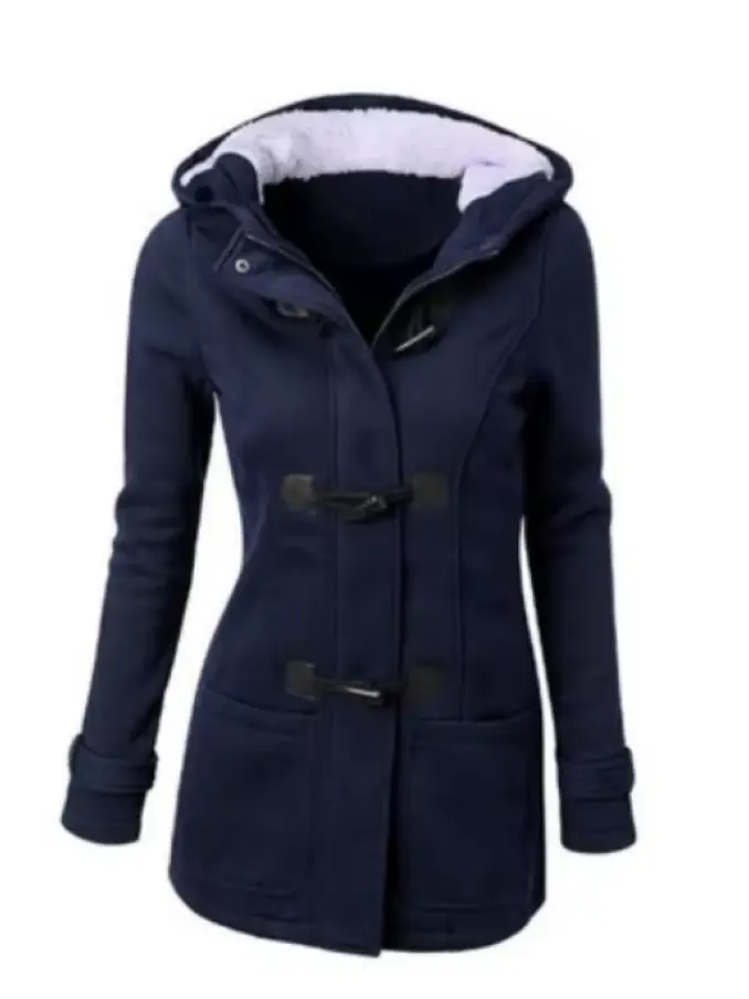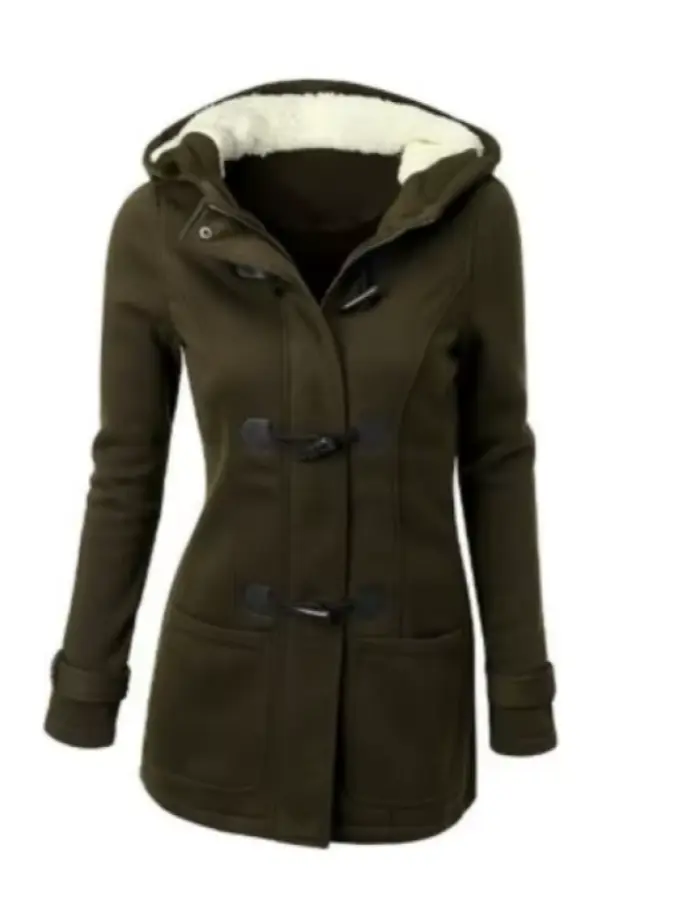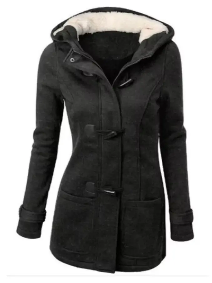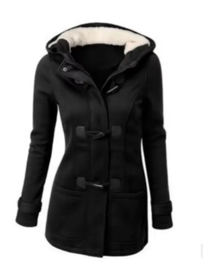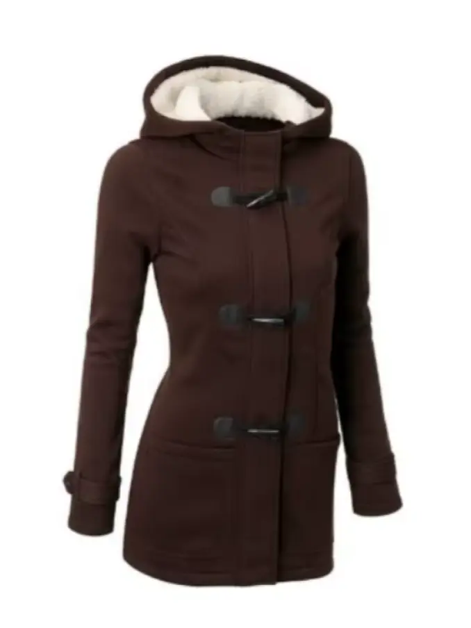 Thick Warm Hooded Mid-Length Coat, Single Breasted Casual Jacket