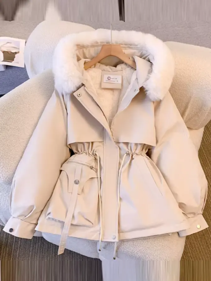 Fashion Women Winter Fur Collar Oversized Long Coat Hooded Warm Lining Puffer Parkas Jackets