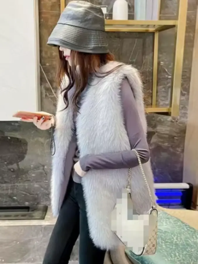 Autumn Winter Women's Street Casual Sleeveless Fur Vest Jacket Waistcoats
