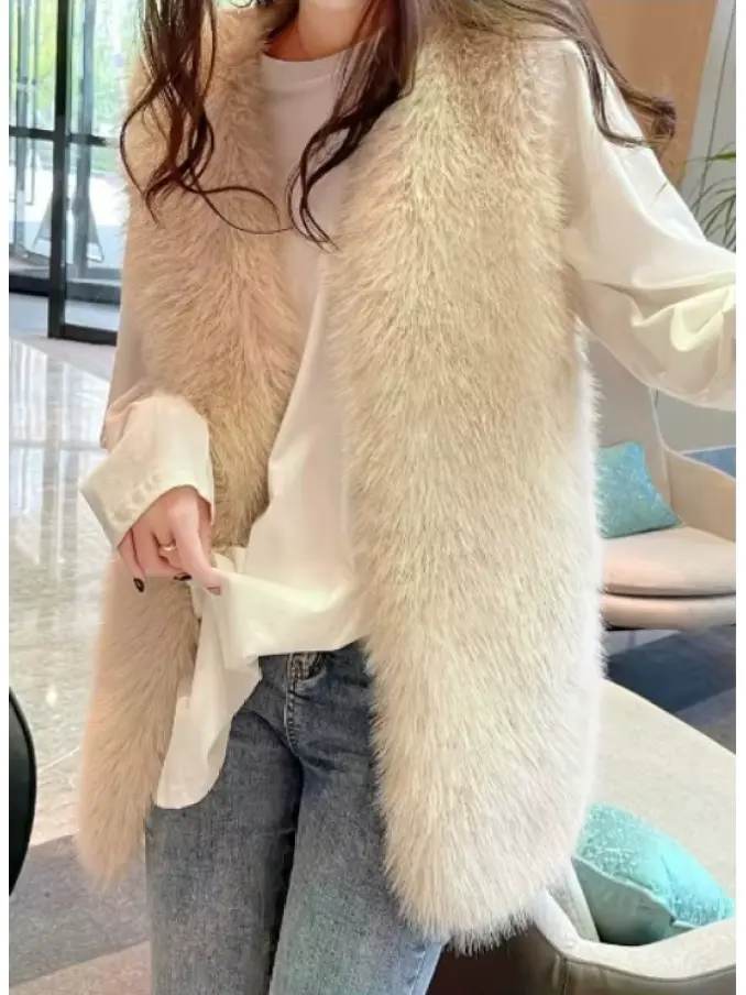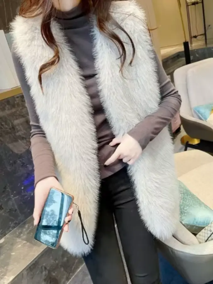Women's Street Casual Sleeveless Fur Vest Jacket Waistcoat