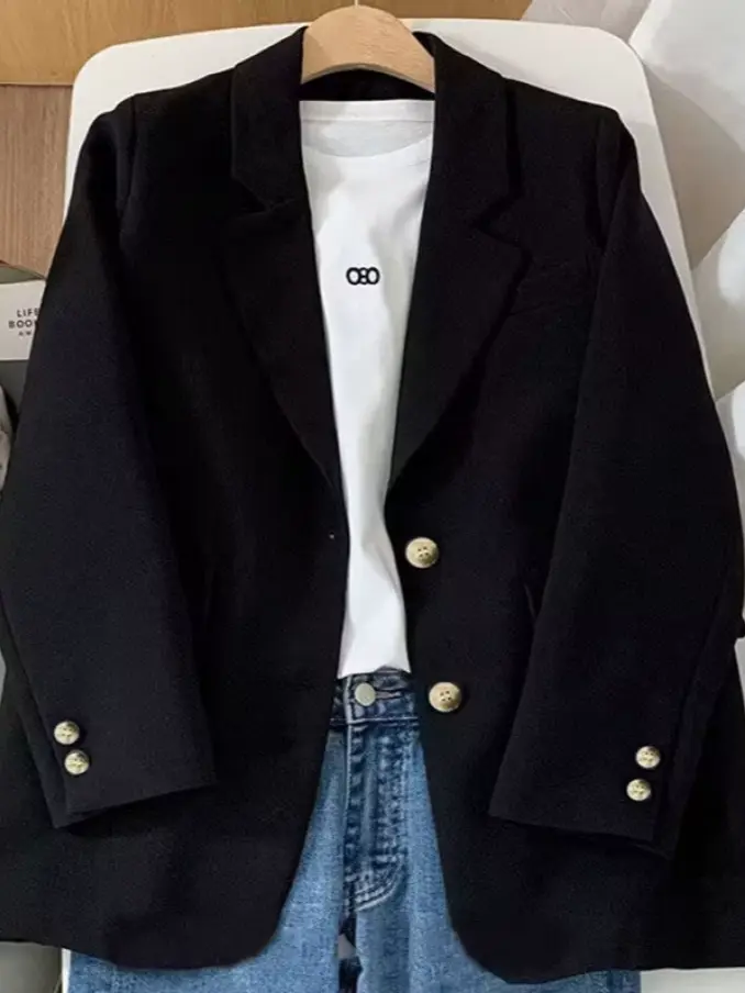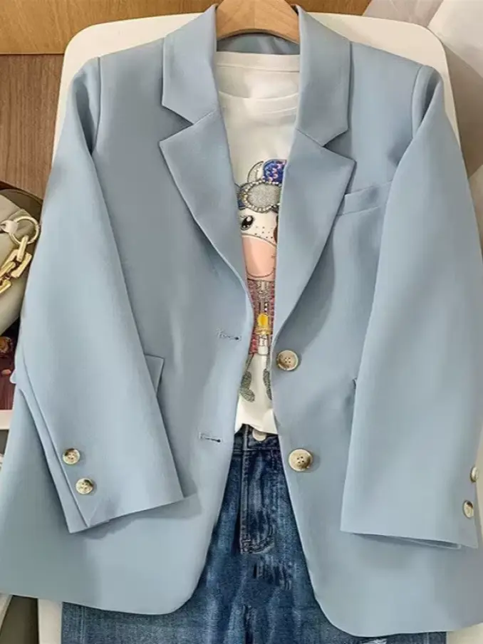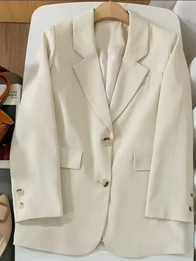 Autumn Fashion Women Turn Down Collar Solid Casual Coats Button Pocket Suits Slim Fit Blazers