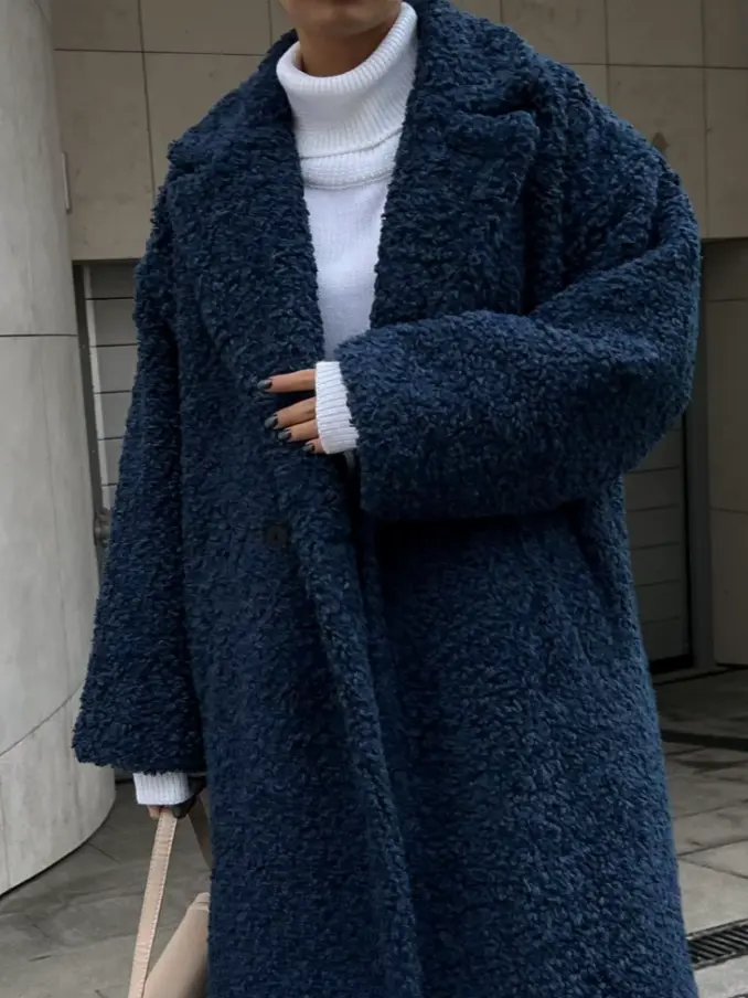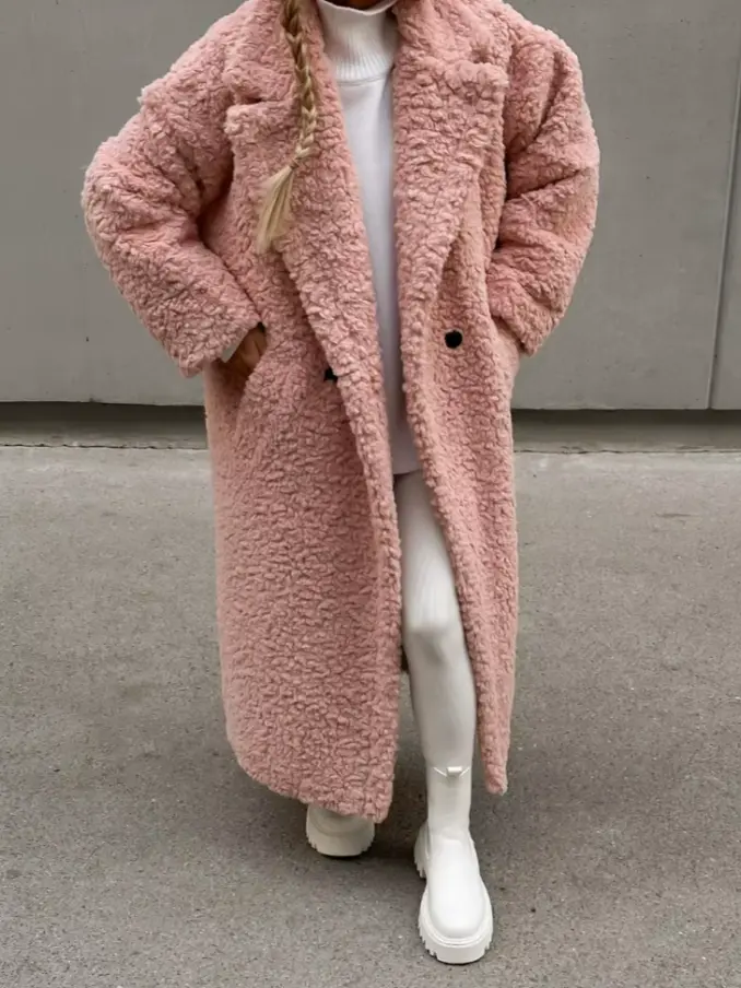 Autumn Winter Lady Outwear Thick Warm Long Sleeve Trench Jacket Woolen Fur Coat