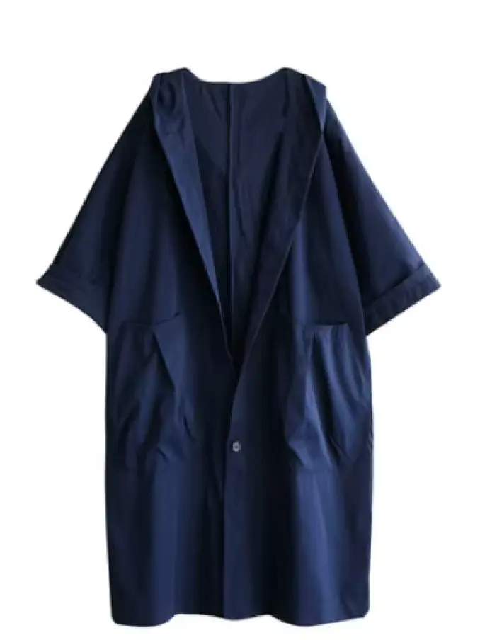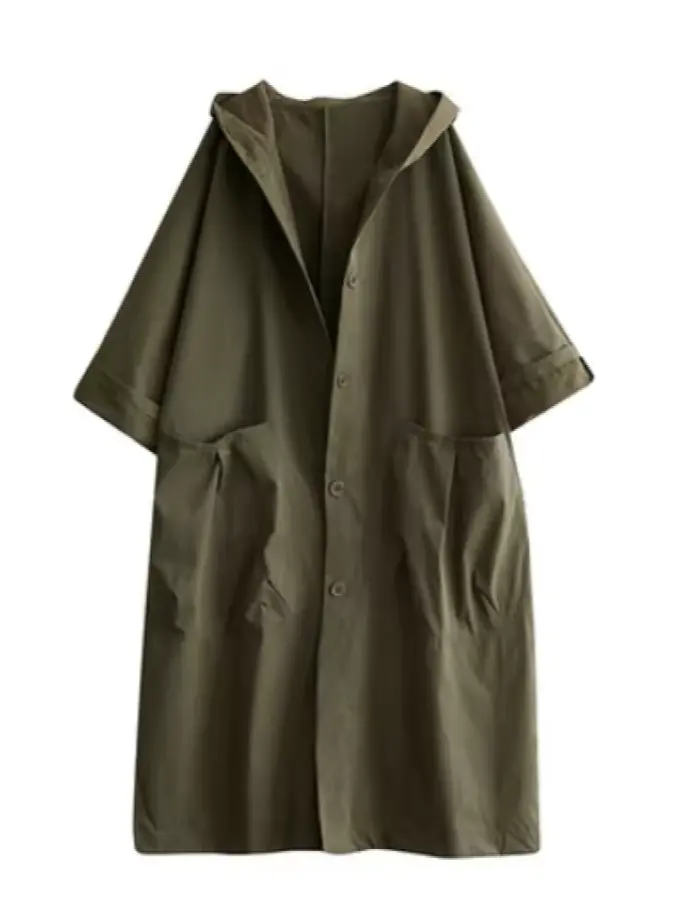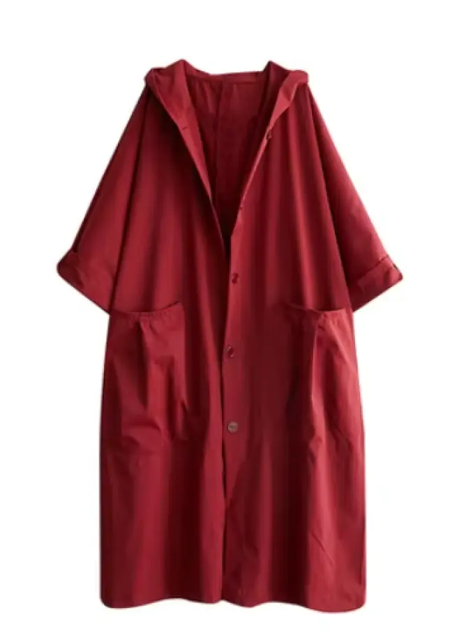 Autumn Winter Women Vintage Windbreaker Loose Pocket Office Lady Thin Hooded Long Trench Coat