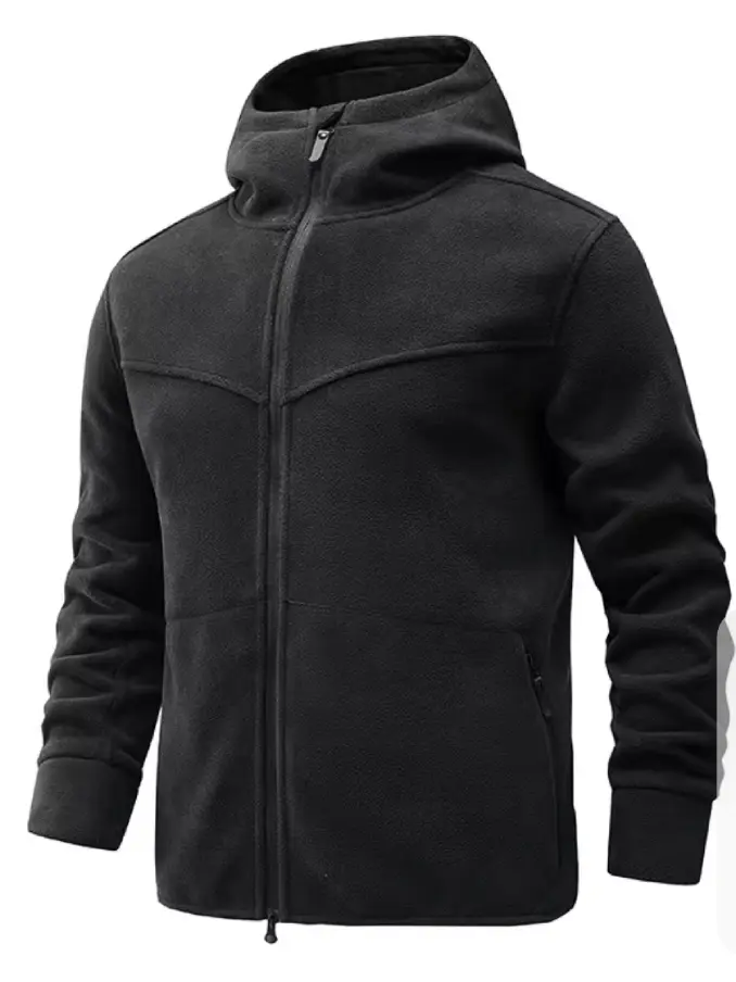 Autumn Winter Jacket With Hood Mens Blouson Fleece Jacket Full-Zip up Outdoor Windproof Warm Work Tactical Fleece Coat