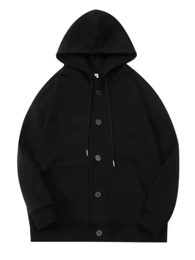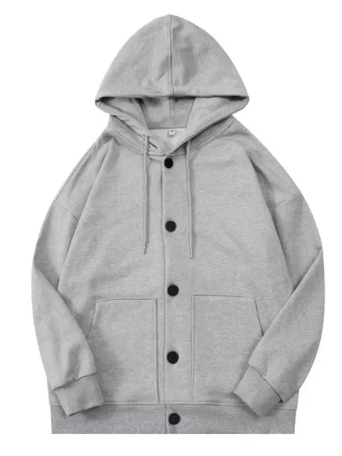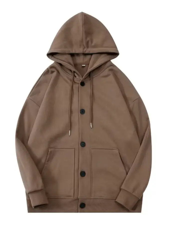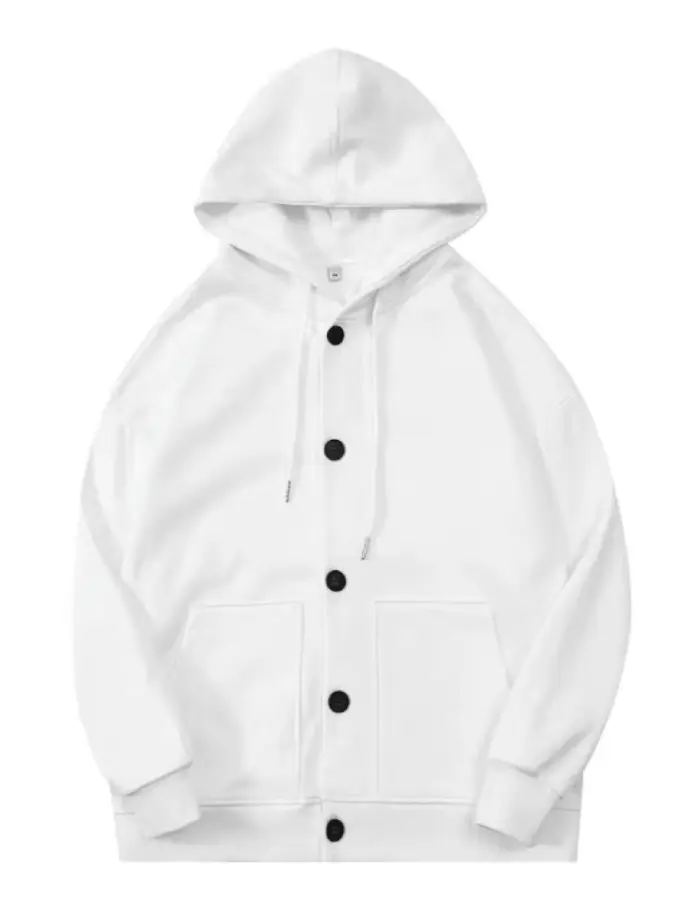 400G China Factory Wholesale Price Men's Oversized Hoodie Solid Pattern Button Front Placket Sweatshirt Blank Fleece Pullover