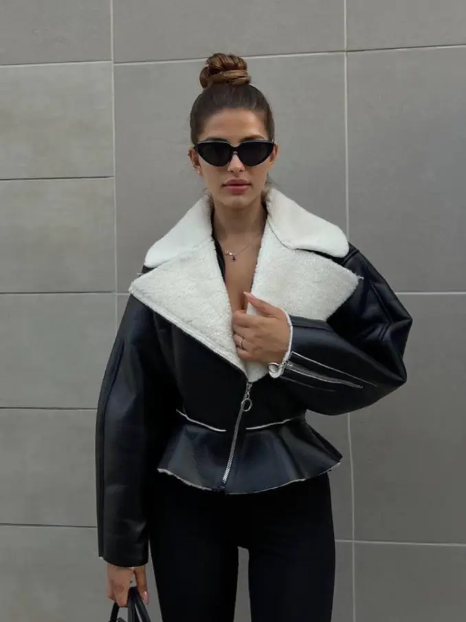 High Quality Ladies Suede Jacket for Autumn Winter Blouson Sngal Blank Color Cool Style Women Sherpa Inside Thick Jacket