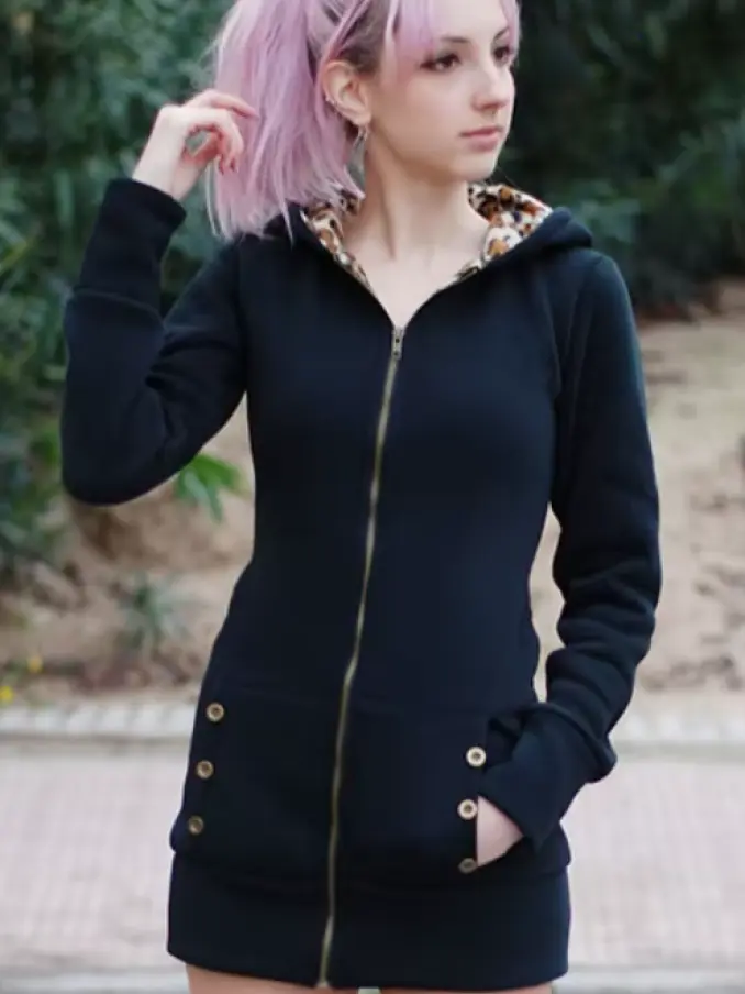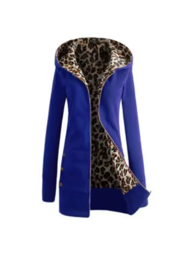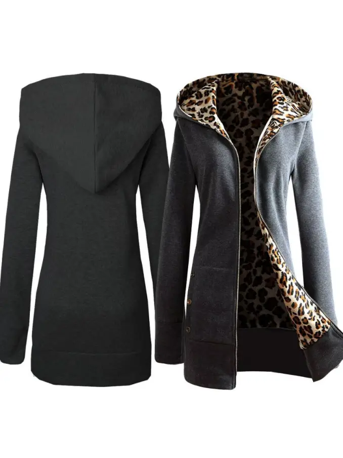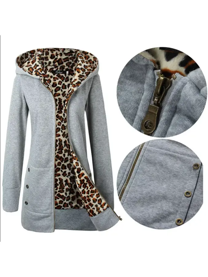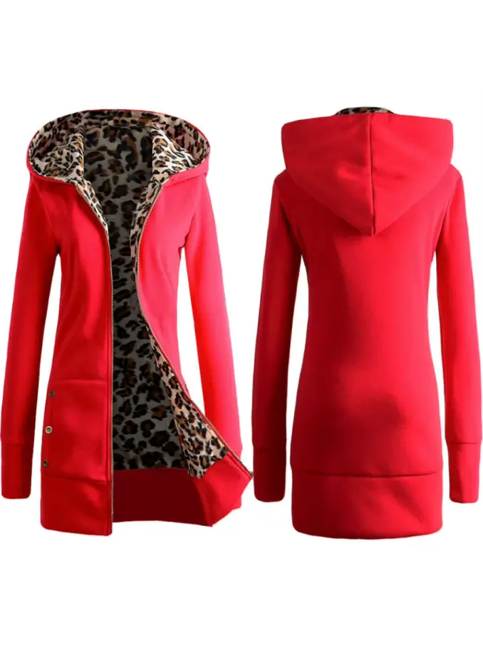 Women Casual Plus Size Leopard Print Zip up Long Sleeve Hoodie Slim Fit Coat