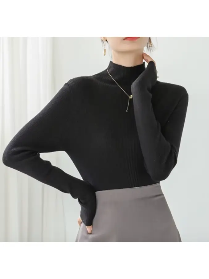 Winter Turtleneck Women Sweater - Vintage Basic Solid, Casual Slim Pullovers Korean Chic Simple Style