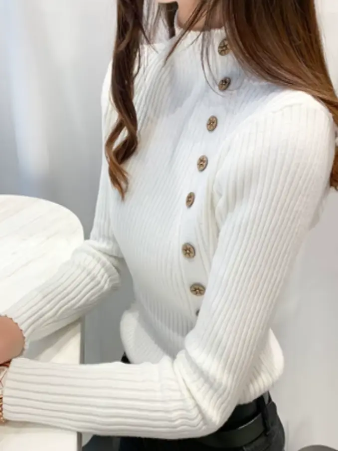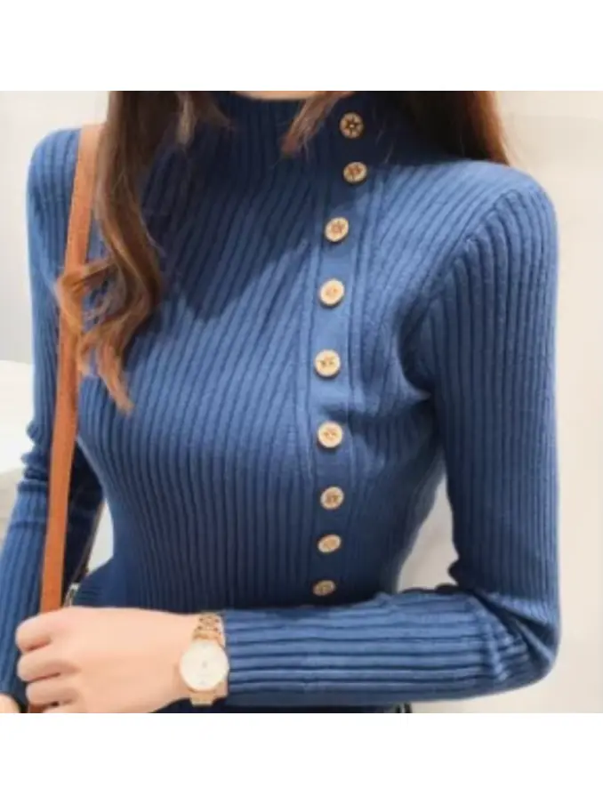 Women's Knitted Pullovers - Long Sleeve Turtleneck Sweaters, Korean Fashion Elegant Ladies Tops