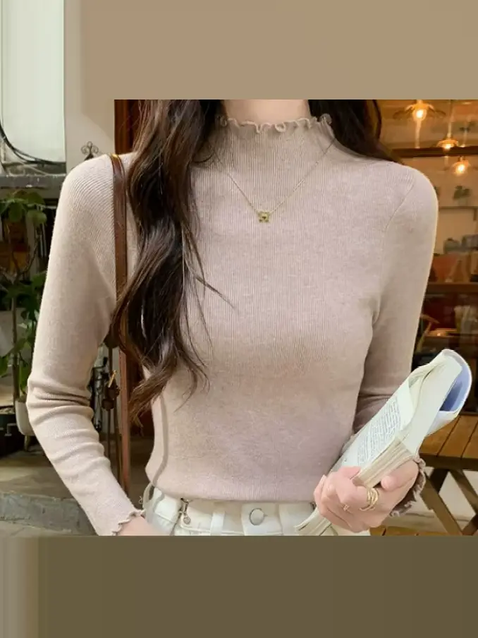 Women Long Sleeve Knitted Top Half High Neck Sweater
