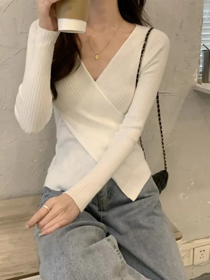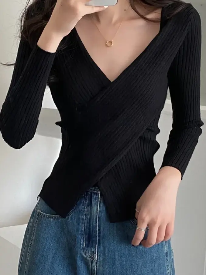 V Neck Pullover Ladies Sweater