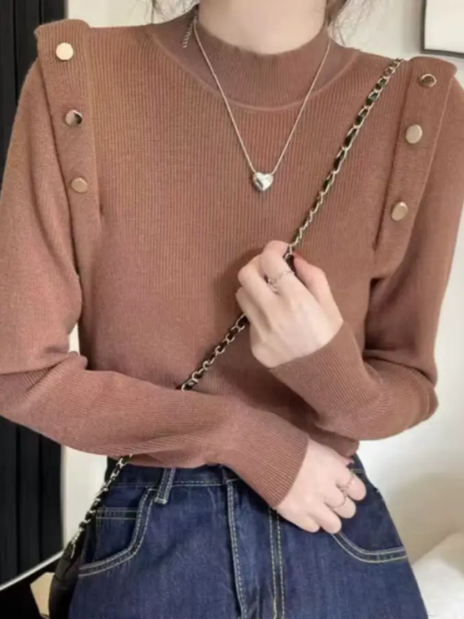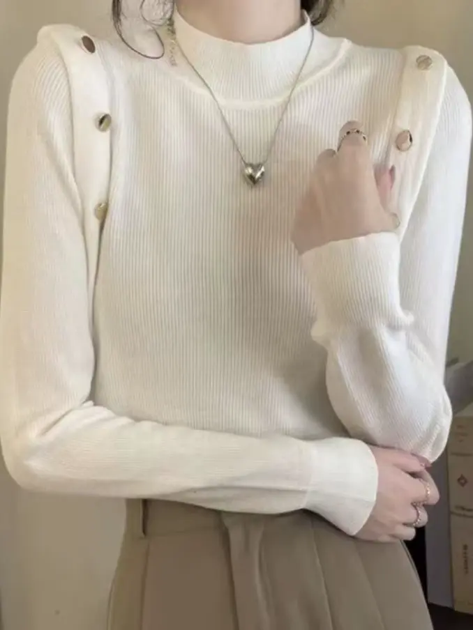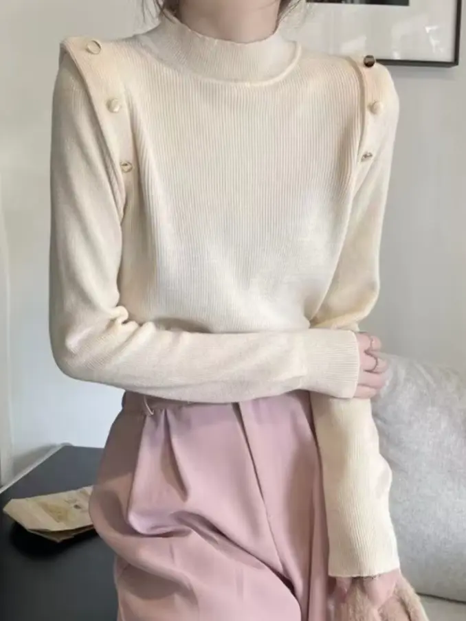 Women Korean Fashion Casual Pullover Knitted Tops Slim Fit Sweaters