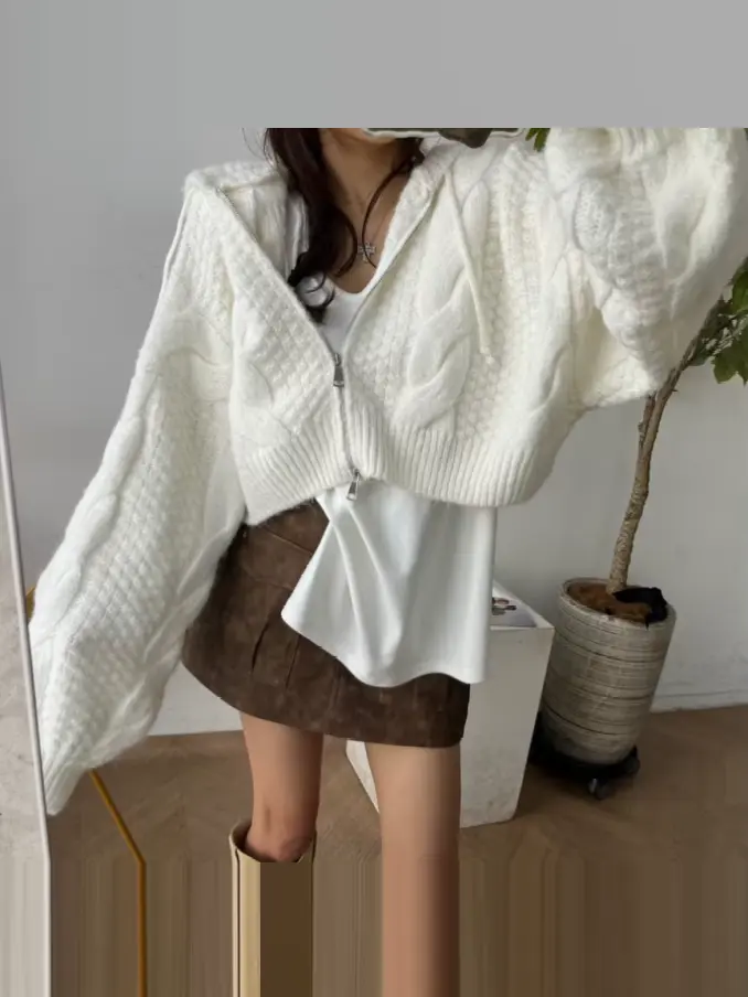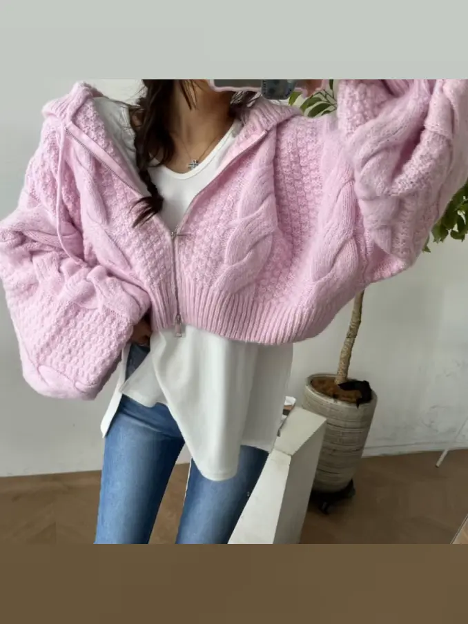 Long Sleeve Hooded Zipper Short Coat Sweater