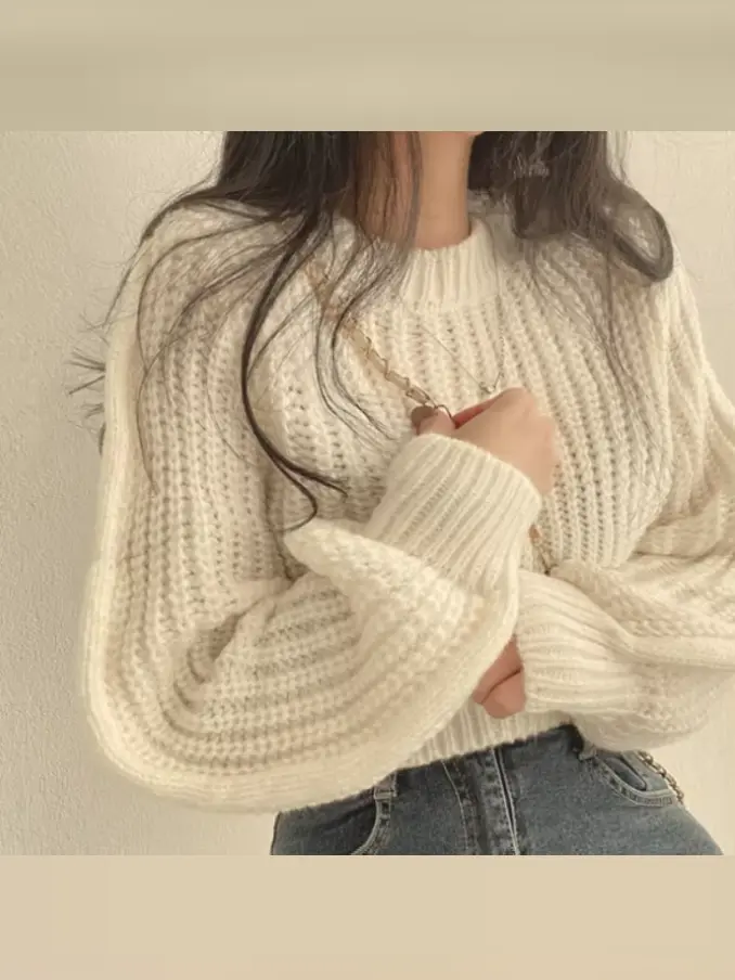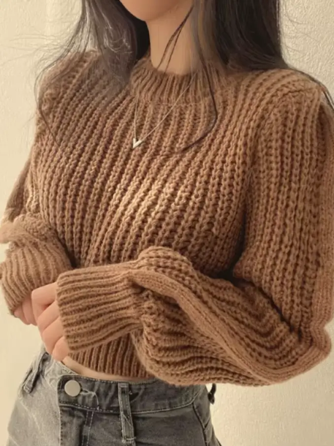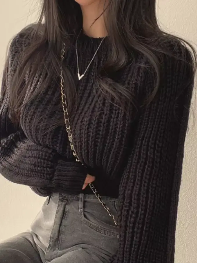 Fashion Sweet Casual Round Neck Loose Pullover Long Sleeve Sweater for Women
