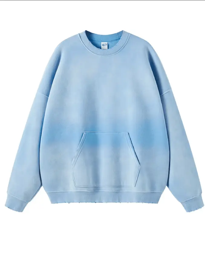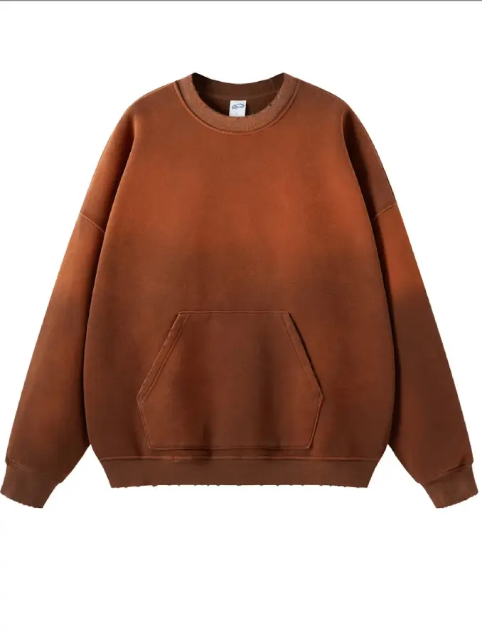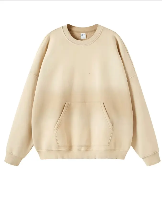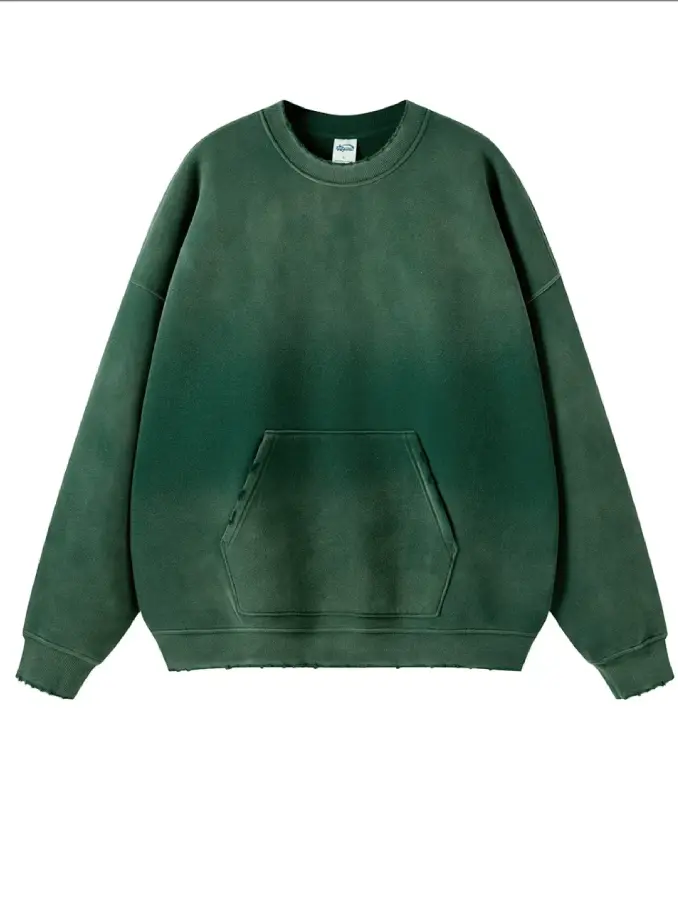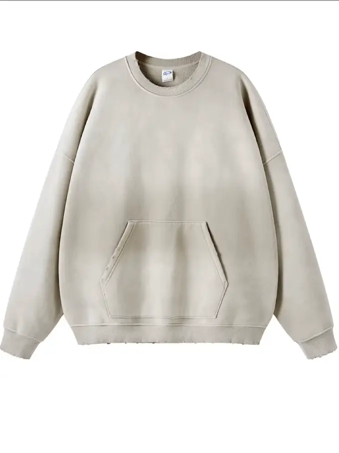 360G French Terry High Quality Vintage Wash Plain Oversized Cotton/Polyester Custom Drop Shoulder Crewneck Sweatshirt