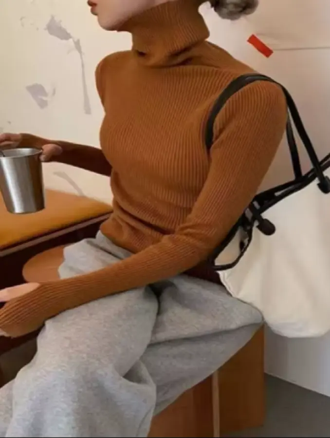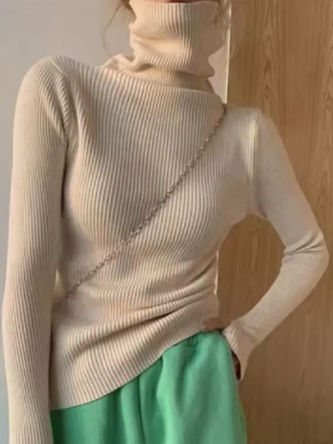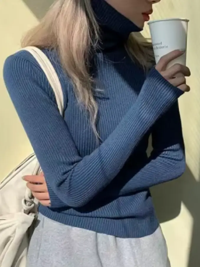 Women Turtleneck Slim Pullover Basic Tops Casual Soft Knit Sweater