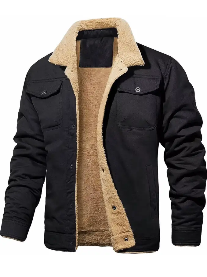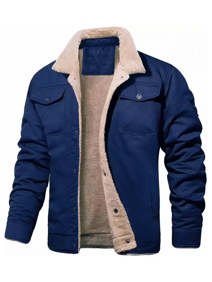 EU America Style Mens Windbreaker Jacket Autumn Warm Jacket Mens Thick With Button Stand up Collar Coats Casual Outdoor Jacket