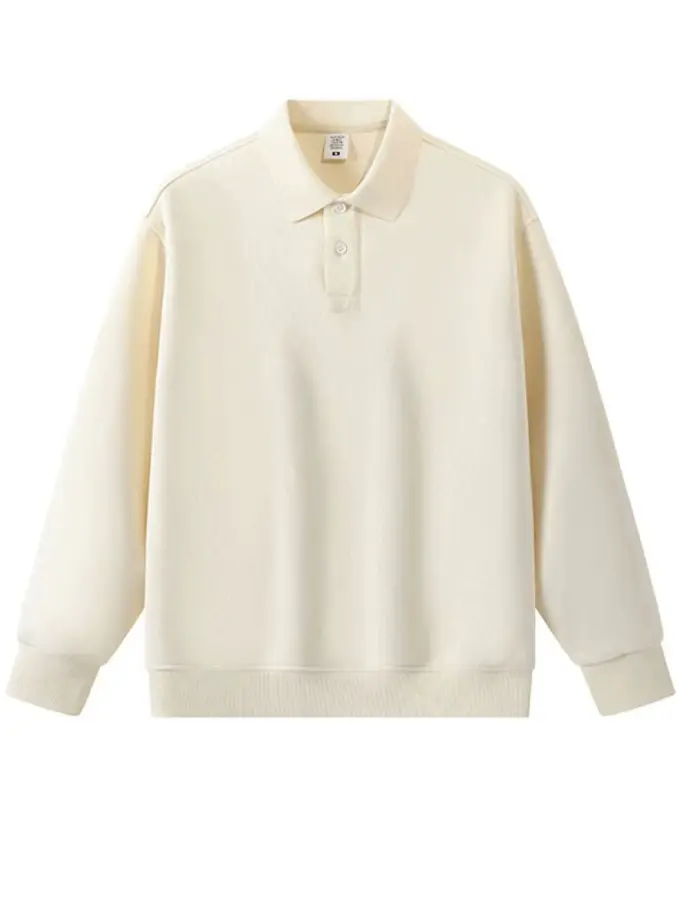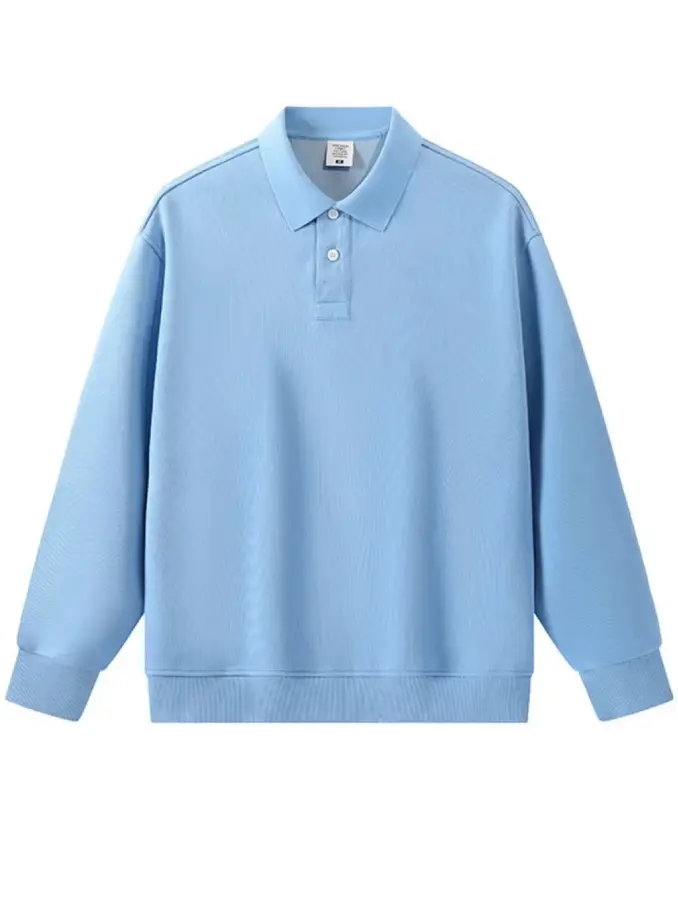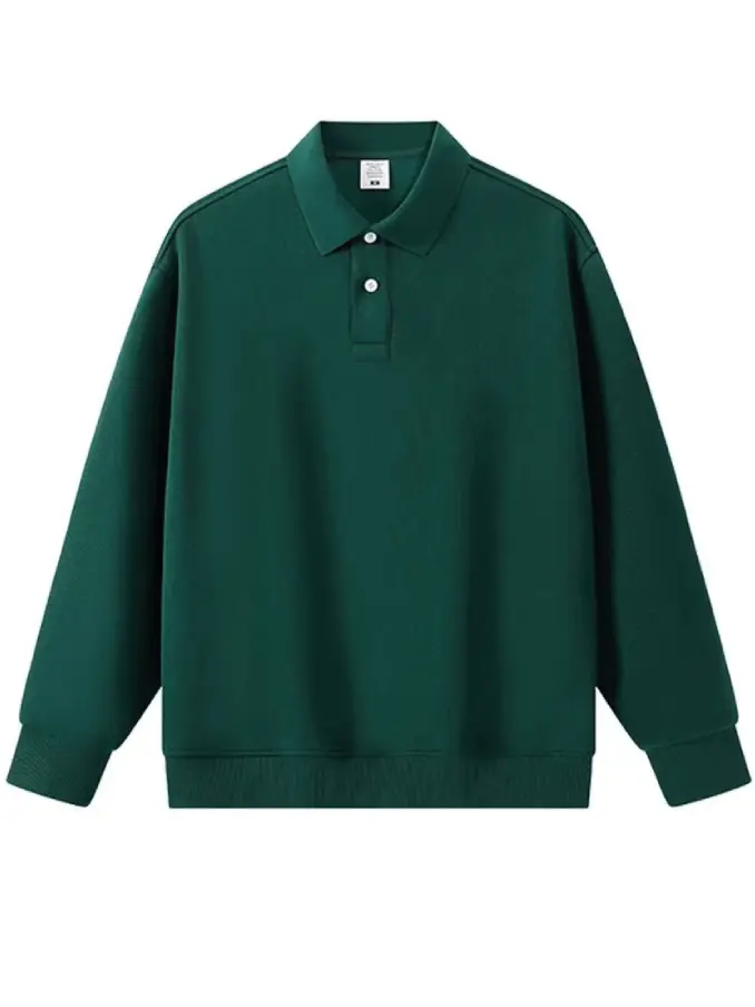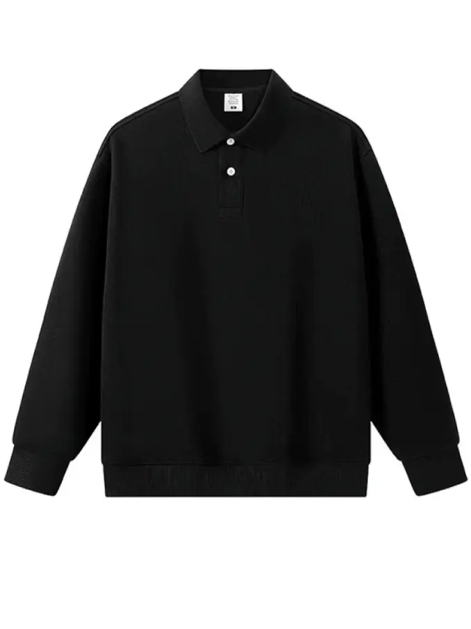 China Factory High Quality 350G Cotton Polyester Men's Drop Shoulder Long Sleeve Oversize Fit Plus Size Casual Blank Polo Tshirt