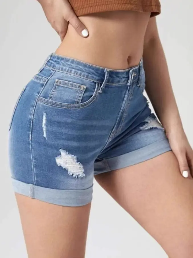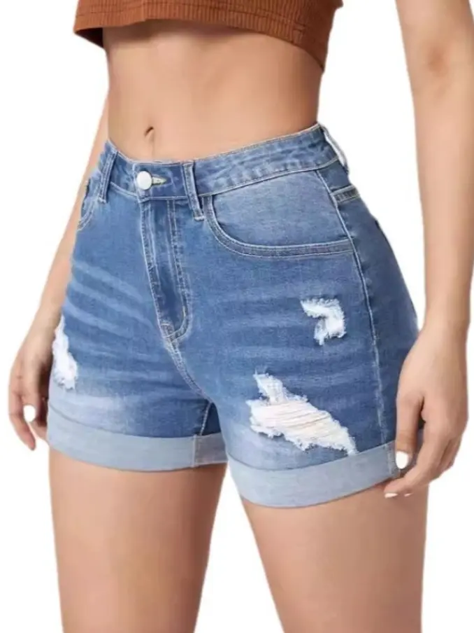 Women's High Waist Ripped Denim Shorts - Stretch Tight Hot Pants Casual Summer Fashion