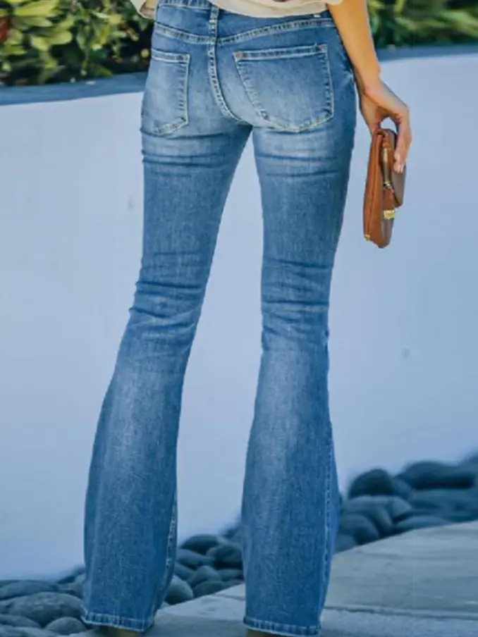Women Casual Fashion Skinny Denim Pants High Waist Button Flare Jeans