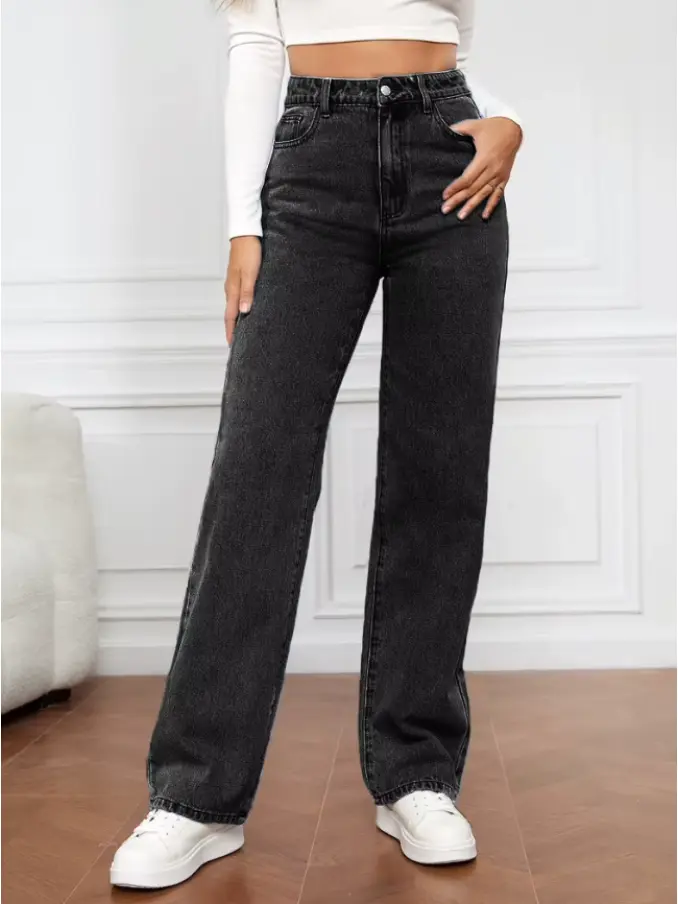 Vintage Fashion Straight Leg Pants High Waist Baggy Jeans Denim Trousers for Women